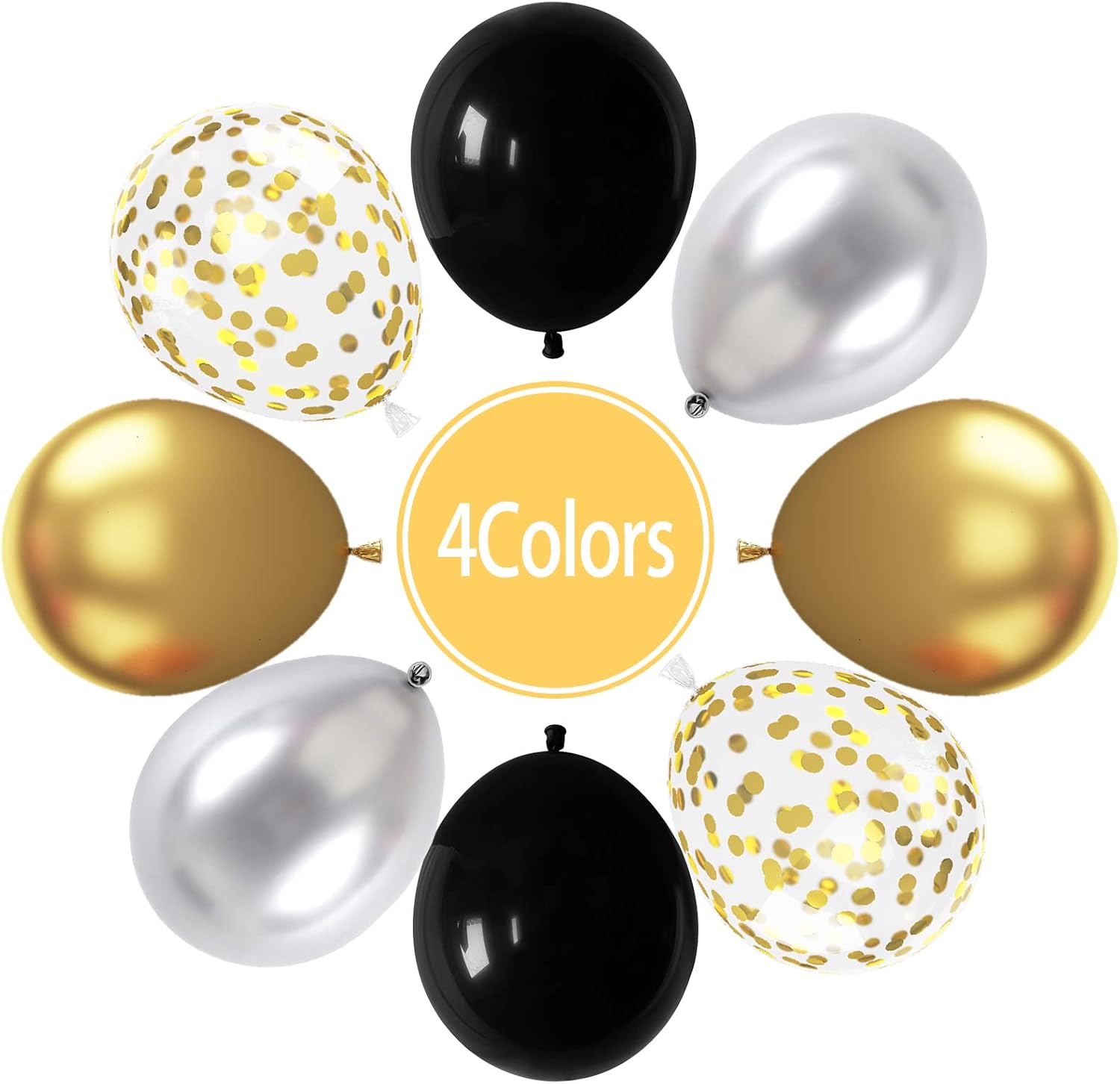 • Mixed Balloons Set: The 12 inch black and gold confetti balloons set includes 15pcs black balloons, 15pcs metallic silver balloons, 20pcs metallic gold balloons, 10pcs gold confetti balloons, 2 roll of ribbon. 62pcs in total. A variety of latex balloons are suitable for your art theme decoration.
