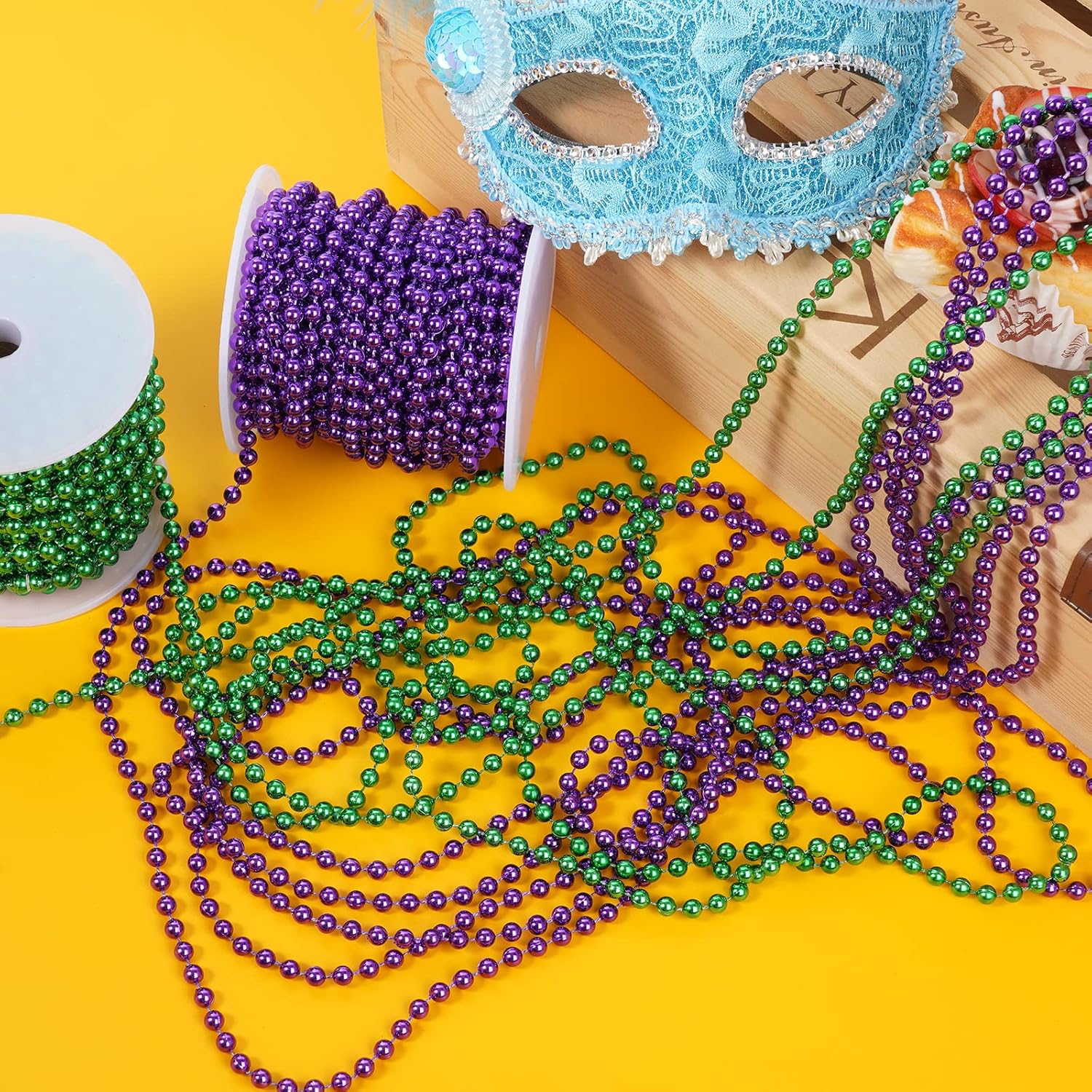 Faux Purple Pearl Beads Garland - 6mm Christmas Tree Beads 22 Yards Spool Pearl String Roll for Wedding Party Christmas Tree Decoration