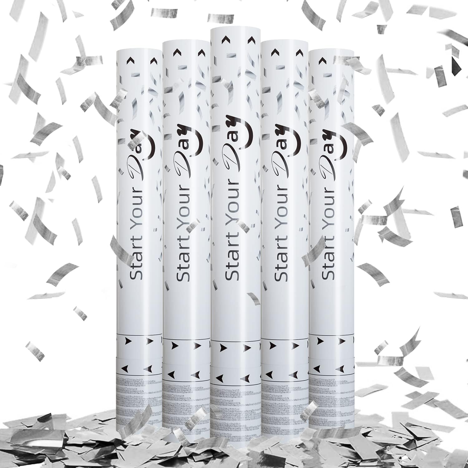 confetti Cannons, 15 Inch+Longer Confetti Shooters Party Poppers, WORKKEEP Silver Confetti Popper Air Powered for Birthday Wedding Celebration Photo Shoot New Year's Eve confetti Gun