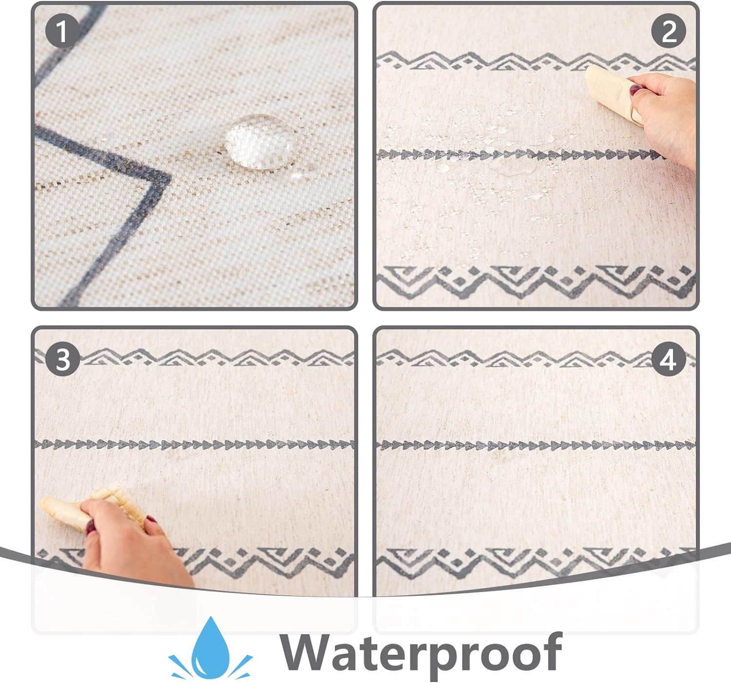 MYSKY HOME Boho Rectangle Tablecloth 60x120 Inches Linen Farmhouse Tablecloth Waterproof Decorative Fabric Table Cloth for Kitchen Dining Bohemian Tablecloth for 8 Feet Table, Grey Tablecloth