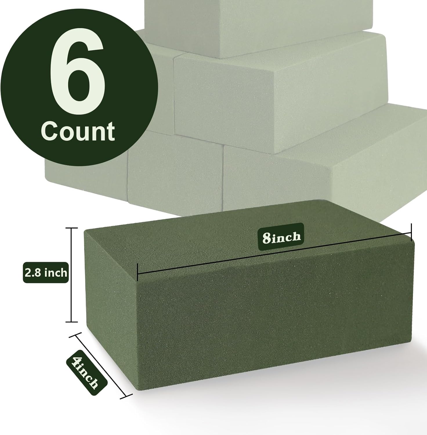 • Package and Size: Include 6-pack green dry floral foam bricks, 8" L x 4" W x 2.8" H each. Lightweight and can be cut into any shape to meet your different needs.
