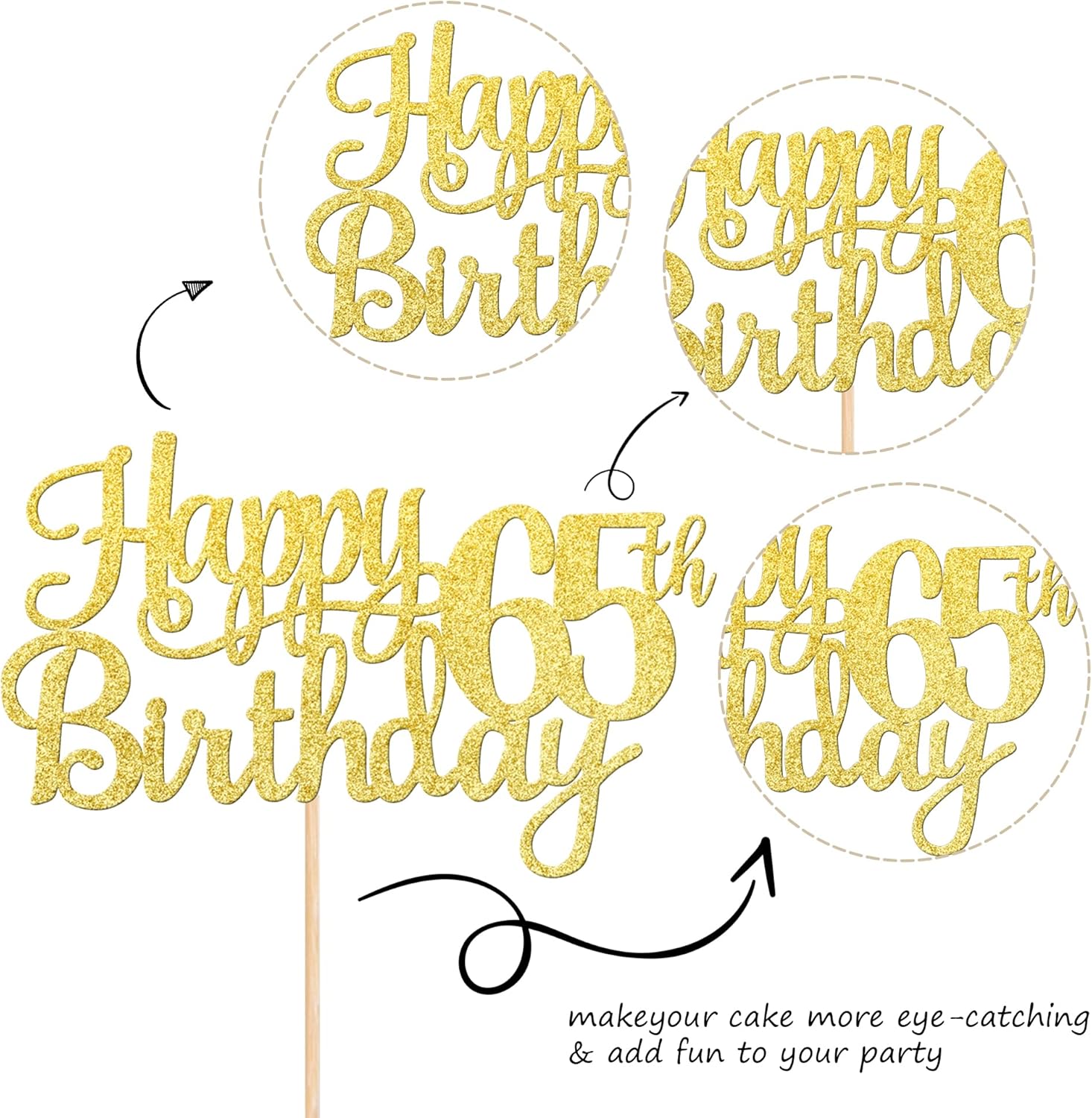 • Wide Usages ! The cake topper is perfect for happy 65th birthday theme party, cheers to 65 years birthday theme party cake decorations, they can make your cake more attractive and bring the fun to your party.You can also apply them for ice cream, fruits, cookies and other desserts.
