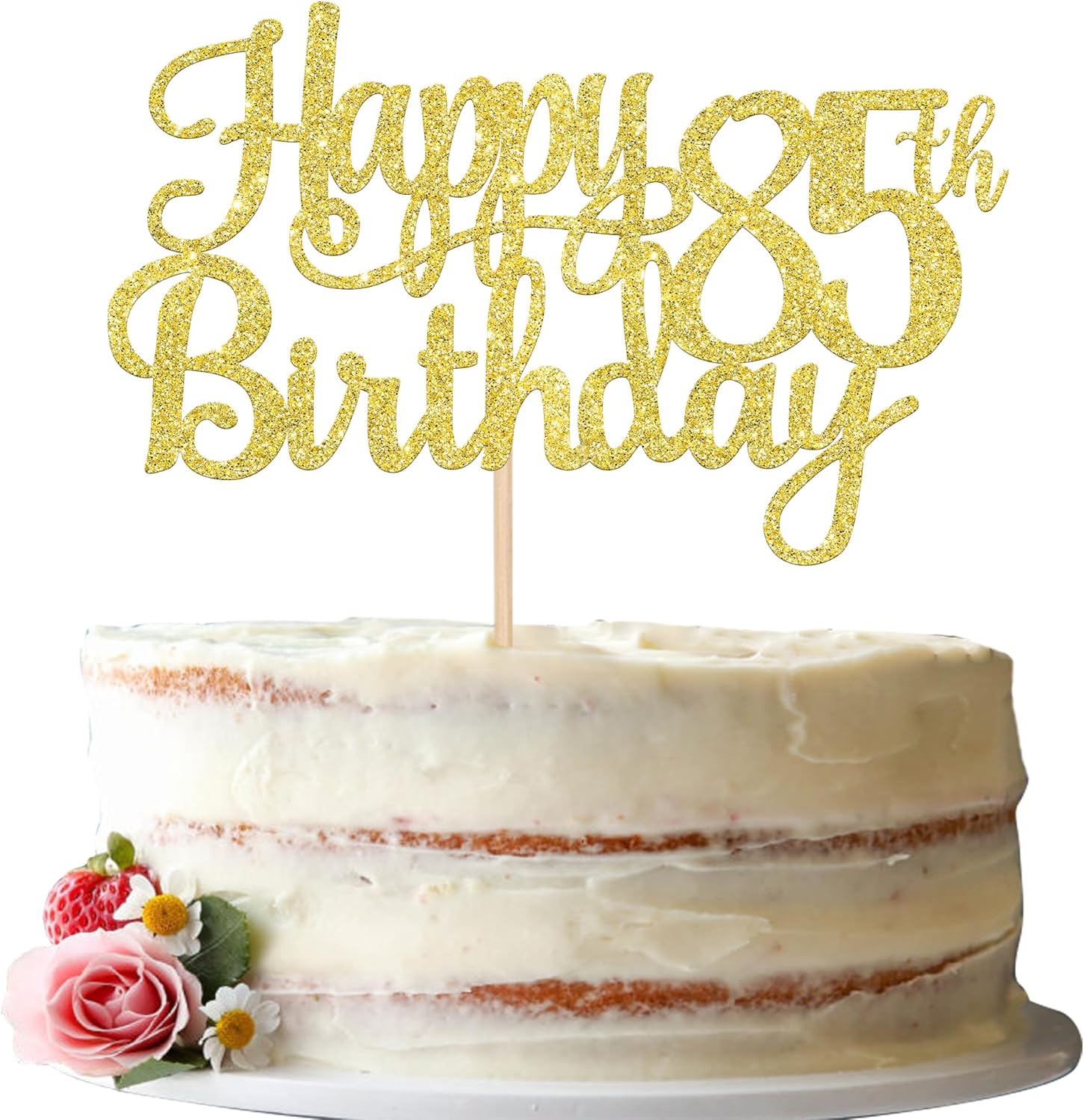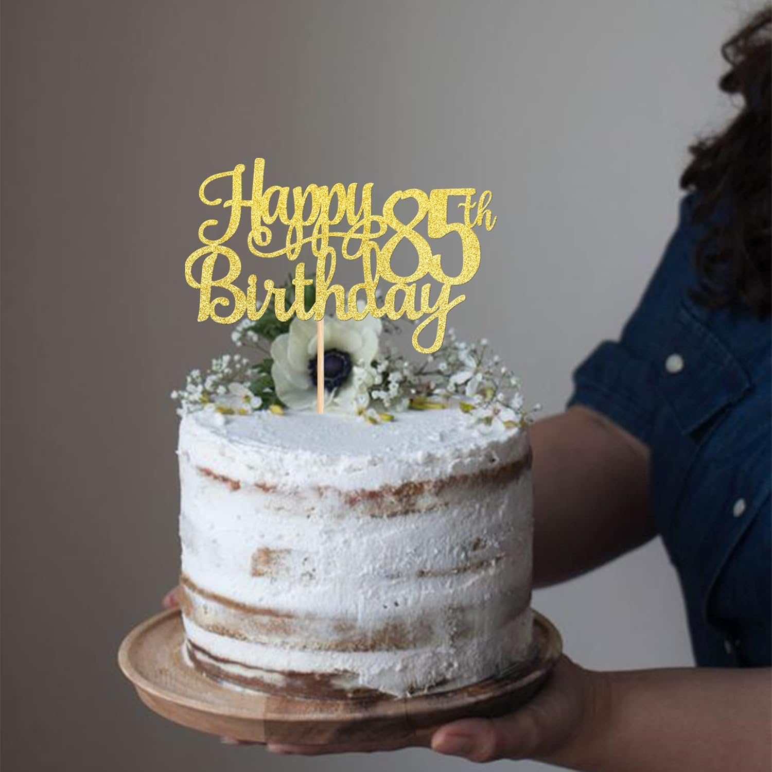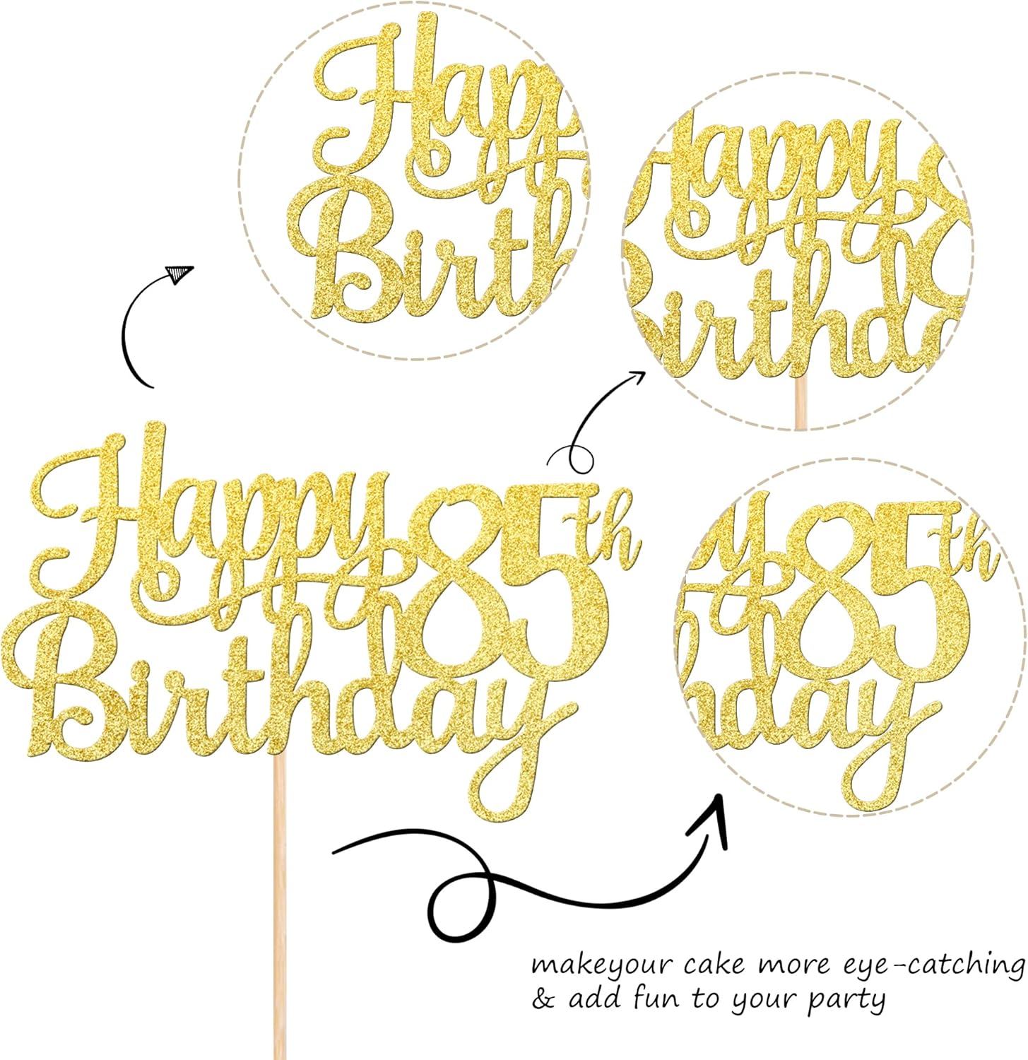 1 PCS Happy 85th Birthday Cake Topper Gold Glitter Cheers to 85 Years Birthday Cake Pick 85 Fabulous Cake Decoration for Happy 85th Birthday Theme Party Decorations Supplies