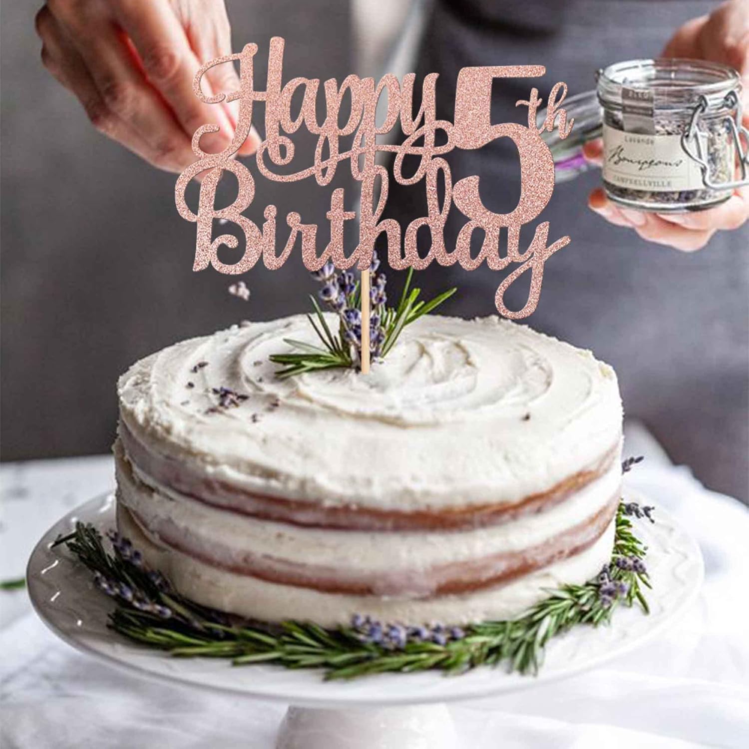 1 PCS Happy 5th Birthday Cake Topper Glitter Cheers to 5 Years Cake Pick Number 5 Fabulous Cake Decoration for 5th Birthday Theme Party Decorations Supplies Rose Gold