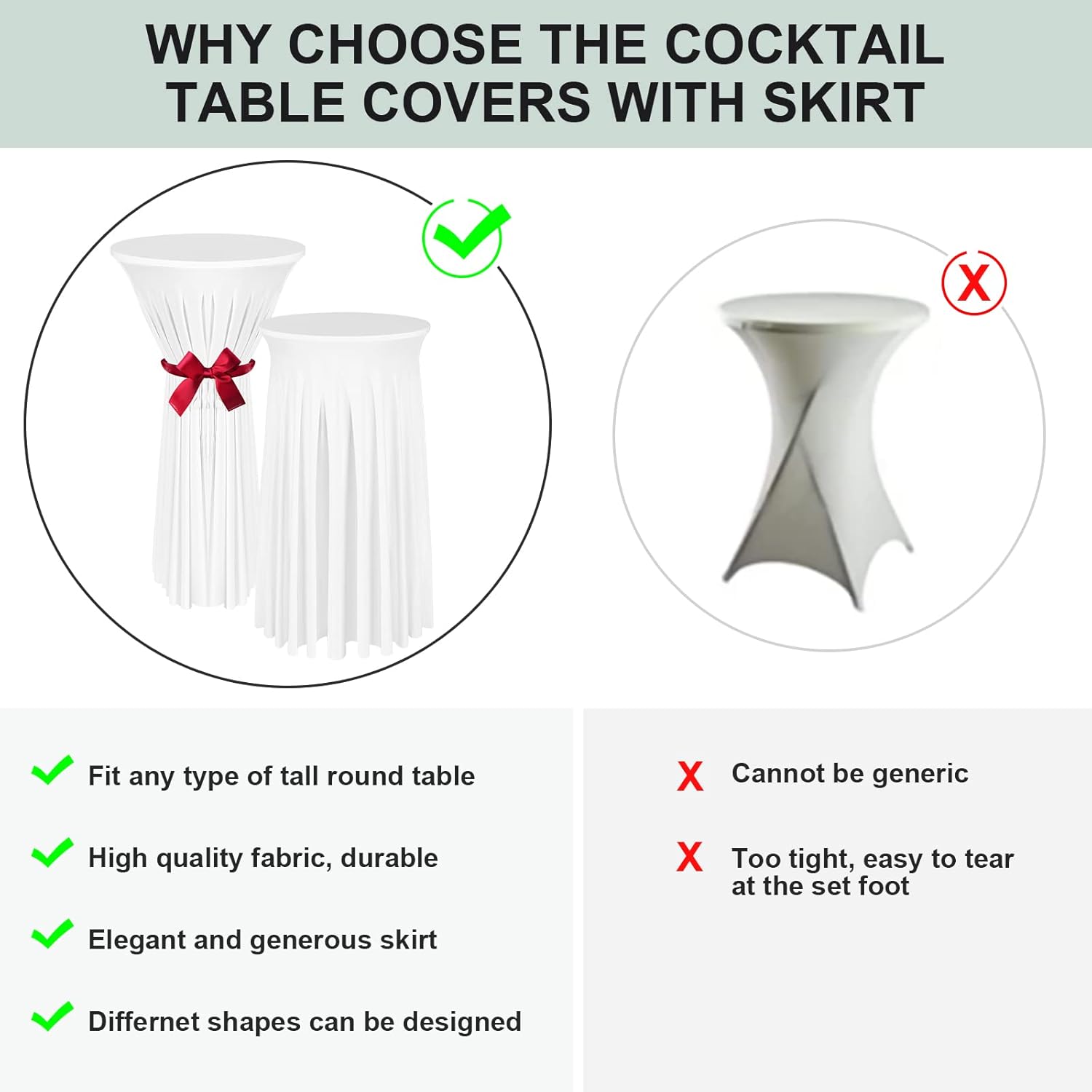 • Easy to Install - All you need to do is put the tablecloth on, and you can set the cocktail table tablecloth by making simple adjustments. You can also use a ribbon to tie the table skirt to dress up your party more elegantly