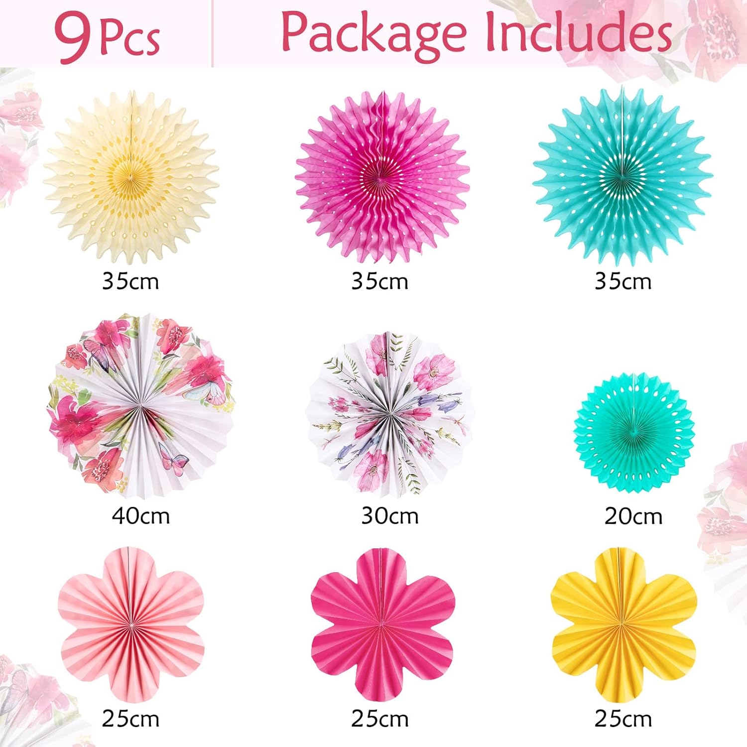 SUNBEAUTY Paper Flowers Decorations for Wall Tea Party Decoration Paper Fans Classroom Decoration Paper Floral Backdrop Decor Paper Fans Decoration Flower Wall Decor,Set of 9