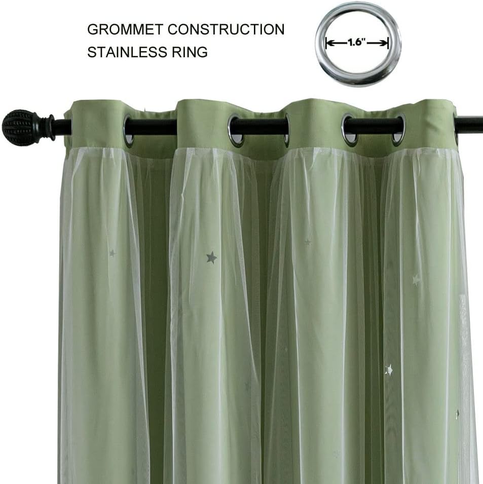 FANLI 2 Panels Star Blackout Curtains for Kid Girls Bedroom Living Room Darking Stripe Double Layer Star Cut Out Wall Home Decor Gradient Grommet Window Curtains (Green 84L)