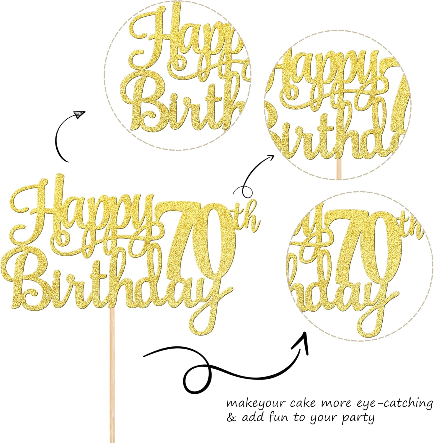 • Wide Usages ! The cake topper is perfect for happy 70th birthday theme party, cheers to 70 years birthday theme party cake decorations, they can make your cake more attractive and bring the fun to your party.You can also apply them for ice cream, fruits, cookies and other desserts.