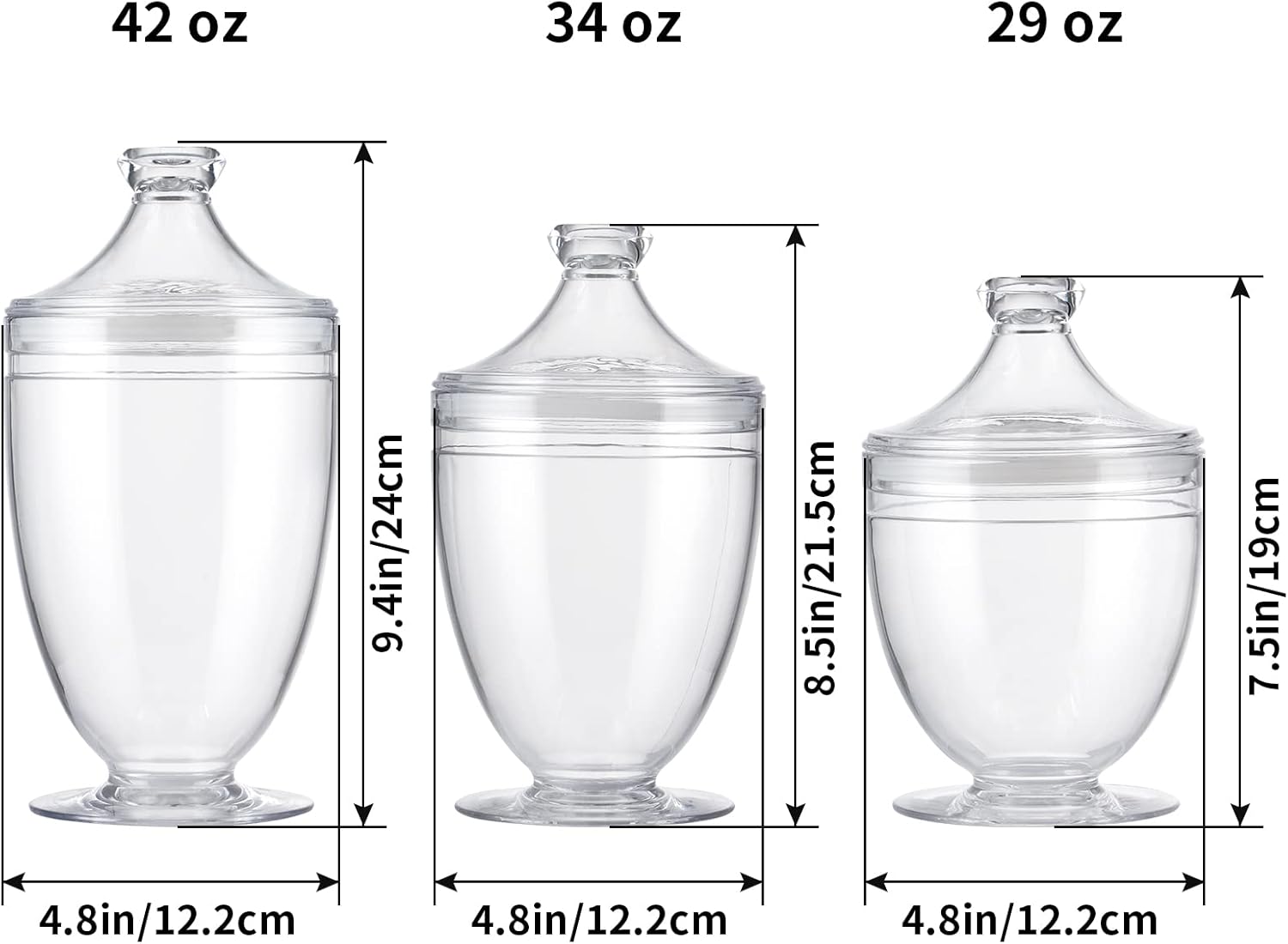 MOLIGOU Acrylic Apothecary Jars with Airtight Lid, Candy Jars for Candy Buffet, Decorative Bathroom Canisters, Set of 3