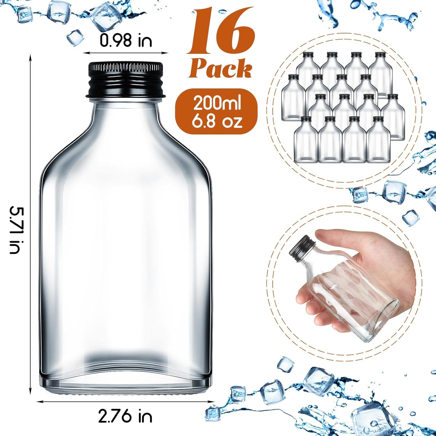 Patelai 16 Pcs Clear Glass Bottles with Caps Mini Glass Flask Liquor Bottles Empty Alcohol Shot Bottling Small Champagne Container DIY Gift for Wine Beverages Liquor Drinks Oil Beer (200 ml/ 6.8oz)