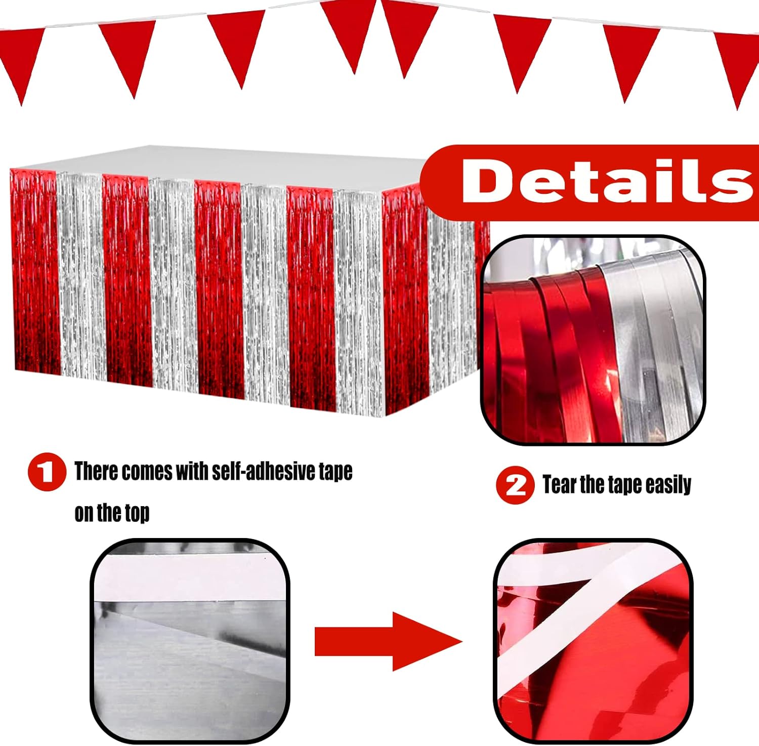 • 【Easy to Use】Each metallic fringe table skirts comes with self-adhesive tape on the top for easy attachment to your wall or table.