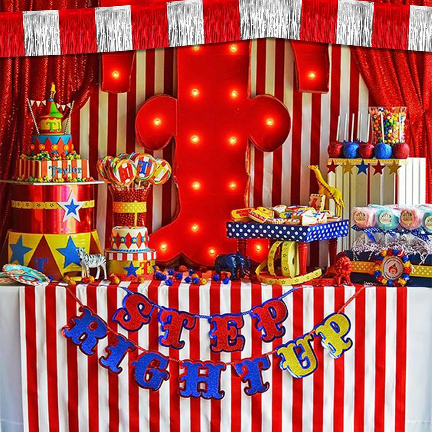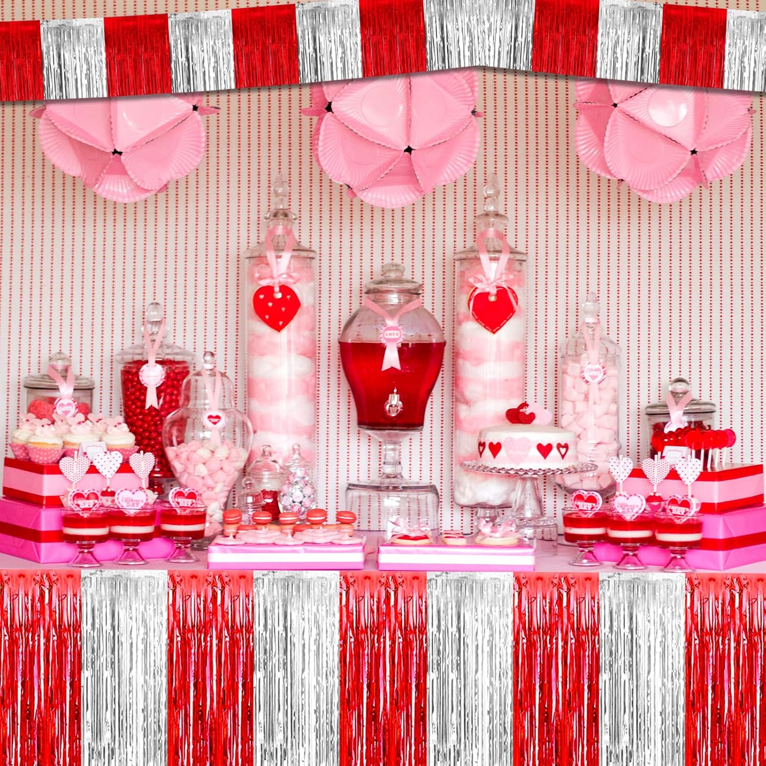 10 Pack 10 Feet Foil Fringe Garland Metallic Tinsel Streamers Banner Wall Hanging Backdrop for Parade Floats, Circus Welcome Carnival Birthday Party Decorations(Silver Red)