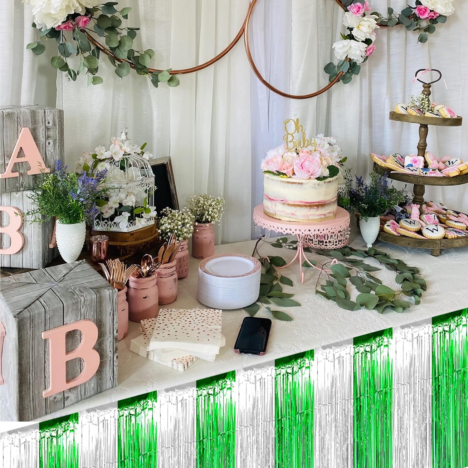 • 【Package Includes】6pcs/set metallic fringe table skirts / shiny tassel banner, beautiful and shiny, provide you with great decoration effects, Each pack of table skirt measures 29x108 inches. Each one will be 9 Ft long, 6 pack will cover 54 FT length of tables.