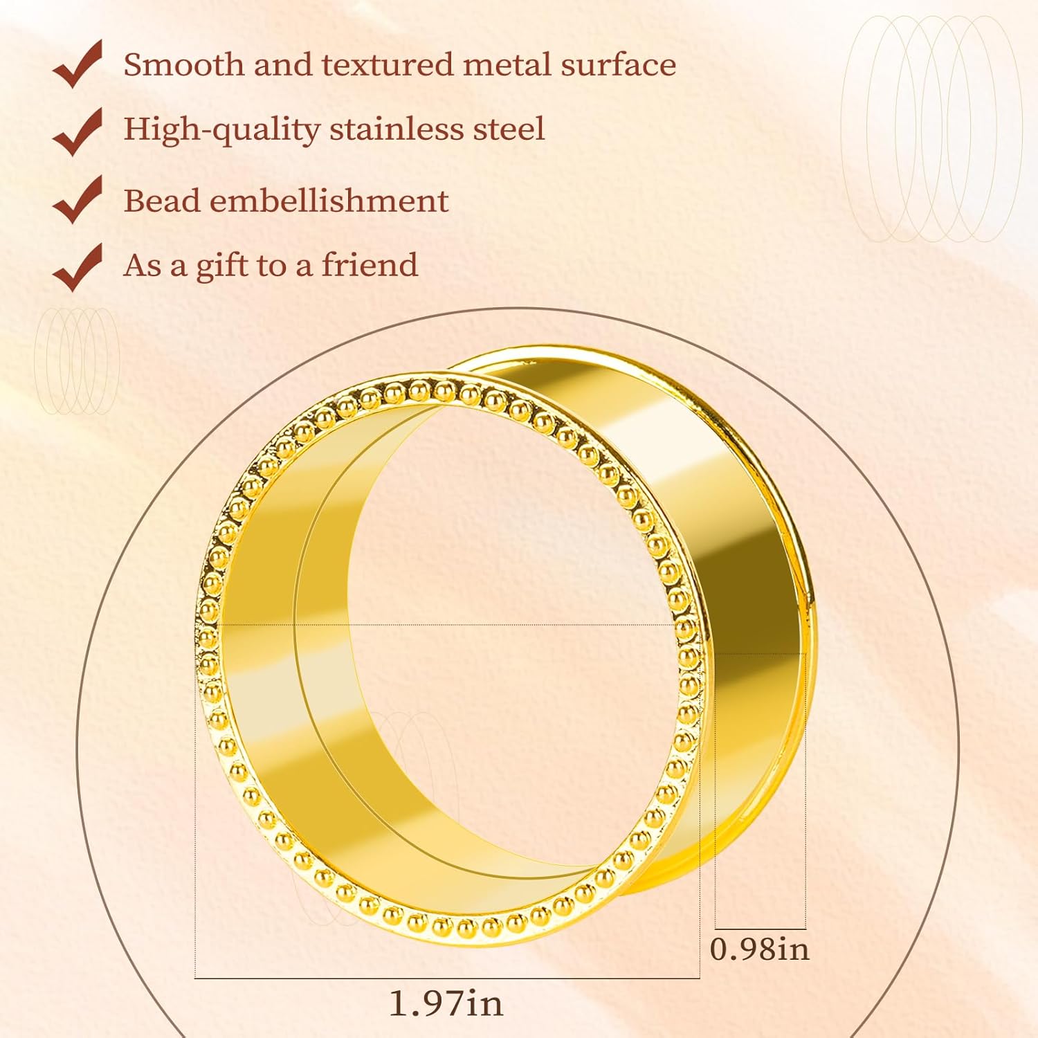12 Pcs Stainless Steel Bead Side Napkin Rings Delicate Serviette Buckles (Gold)