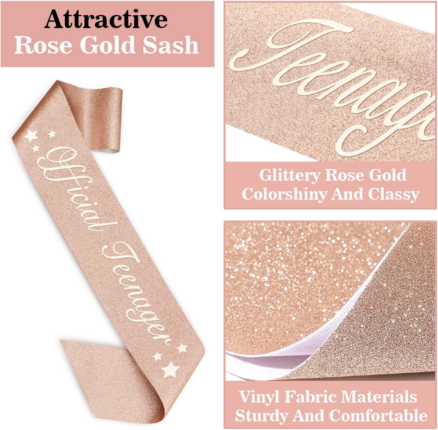 • 13th Birthday Sash for Girls: Our 13th birthday sash is made of high quality glitter fabirc with foil lettering "Official Teenager". The sash is in 63 inch length and comes with a gold charm pin that you can easily adjust the length you need