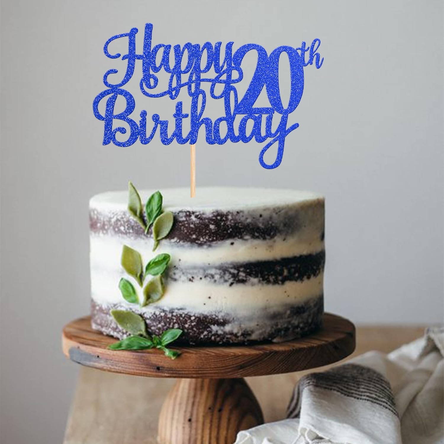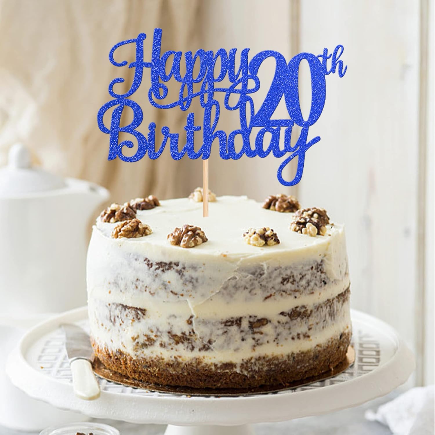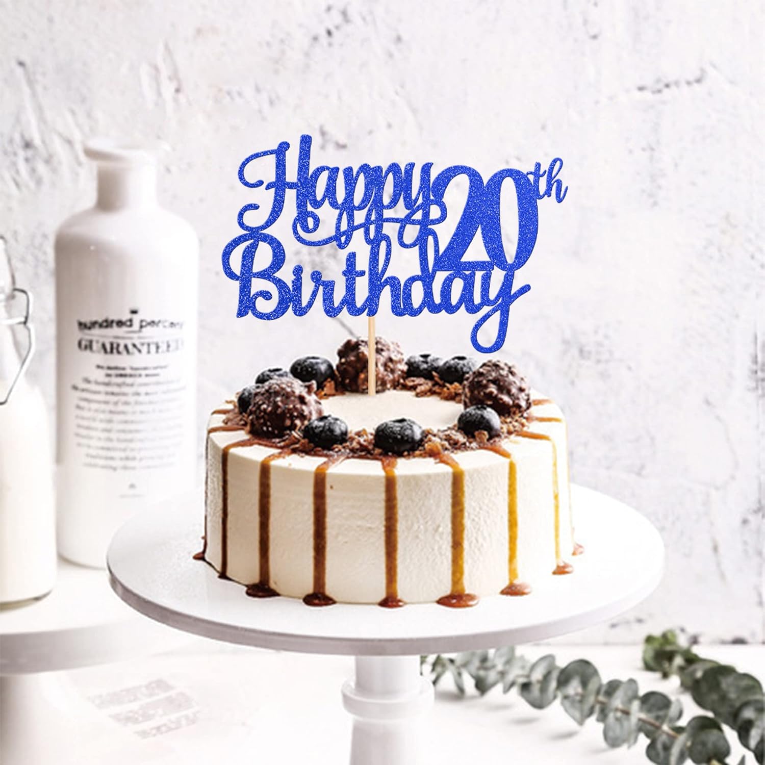 1 PCS Happy 20th Birthday Cake Topper Glitter Cheers to 20 Years Birthday Cake Pick Twenty 20 Fabulous Cake Decoration for Happy 20th Birthday Theme Party Decorations Supplies Blue