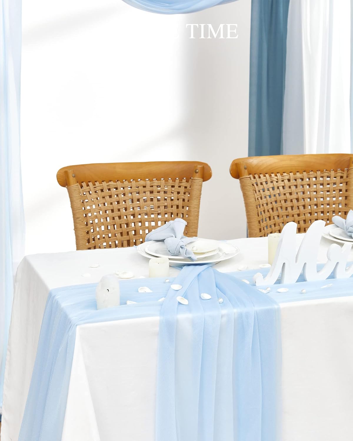 TINGE TIME 3 Panels Wedding Arch Draping Fabric, 30" x 20ft Gradient Blue Chiffon Fabric Drapery Sheer Backdrop Curtain for Weddings Ceremony Party Decoration,Wedding Arch Drapes for Weddings Ceremony
