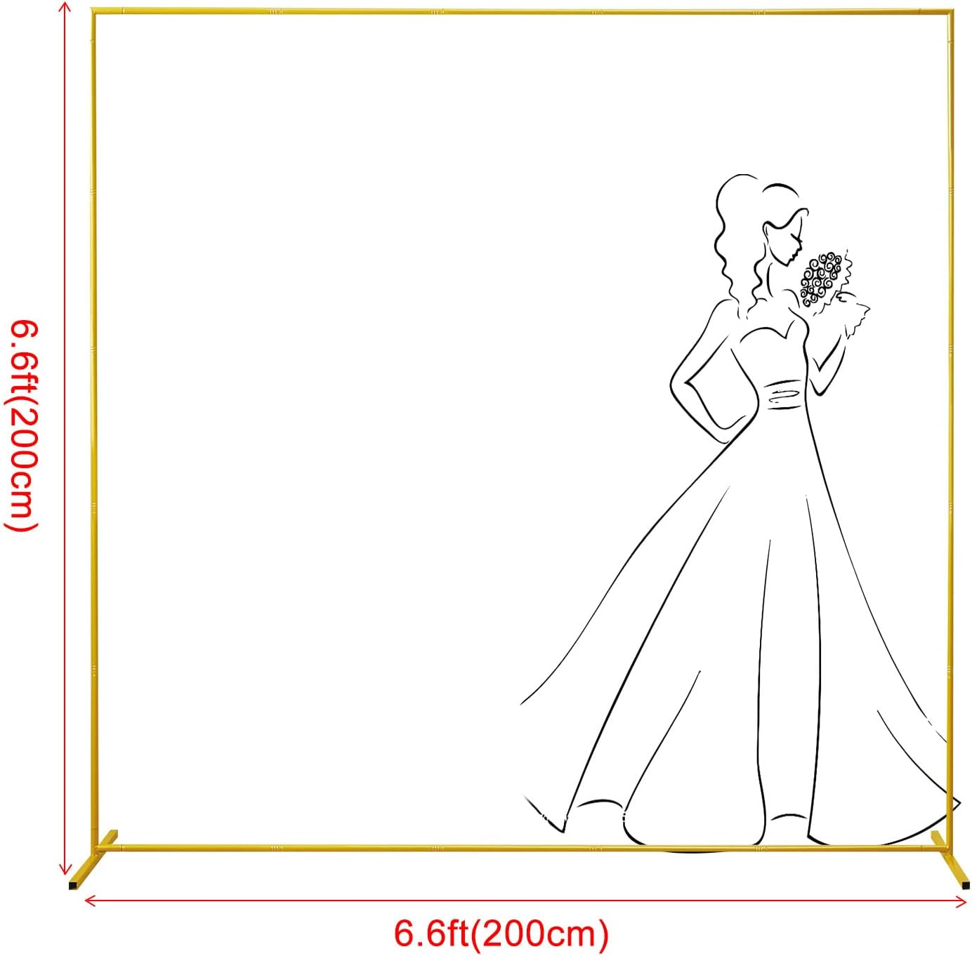 Wedding Arch Backdrop Stand 6.6x6.6 FT Gold Square Balloon Arch Frame for Wedding, Birthday Party, Baby Shower Ceremony Decoration