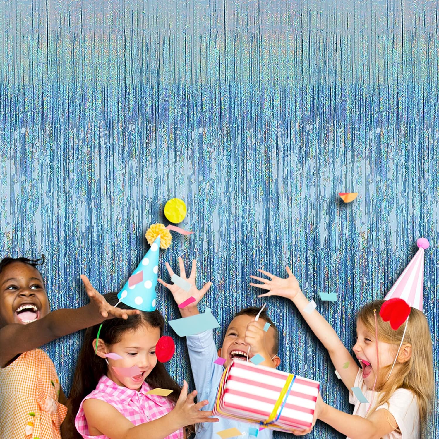4p Pack Sky Blue Tinsel Foil Fringe Curtain Backdrop, 3.28Ft x 8.2Ft Metallic Streamers for Photo Booth Props Wedding Bridal Shower Bachelorette Birthday Christmas Party Decoration