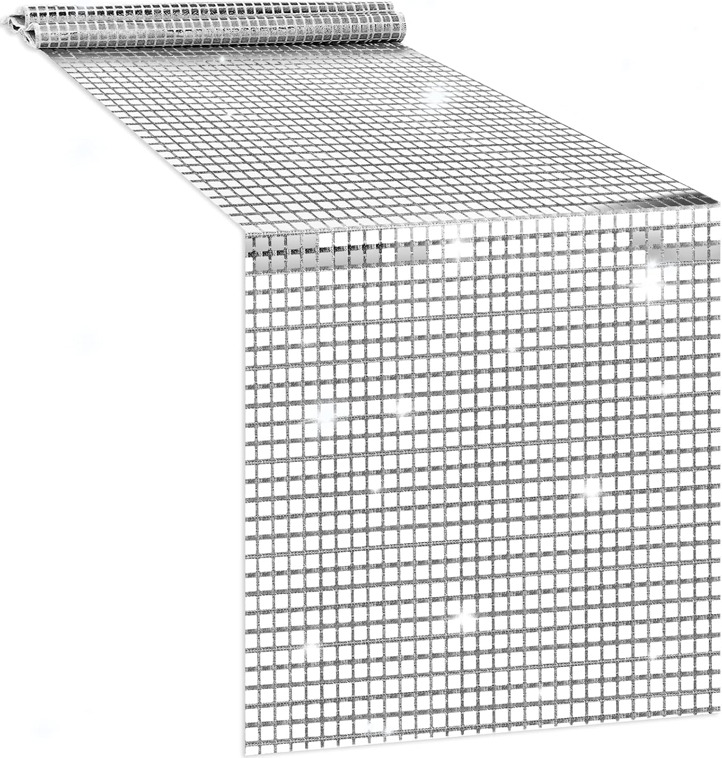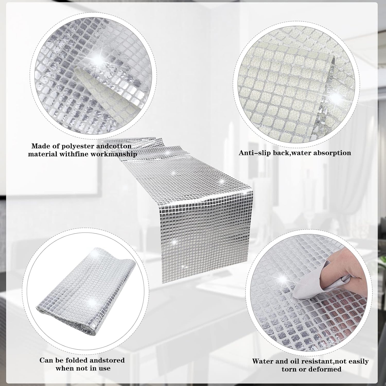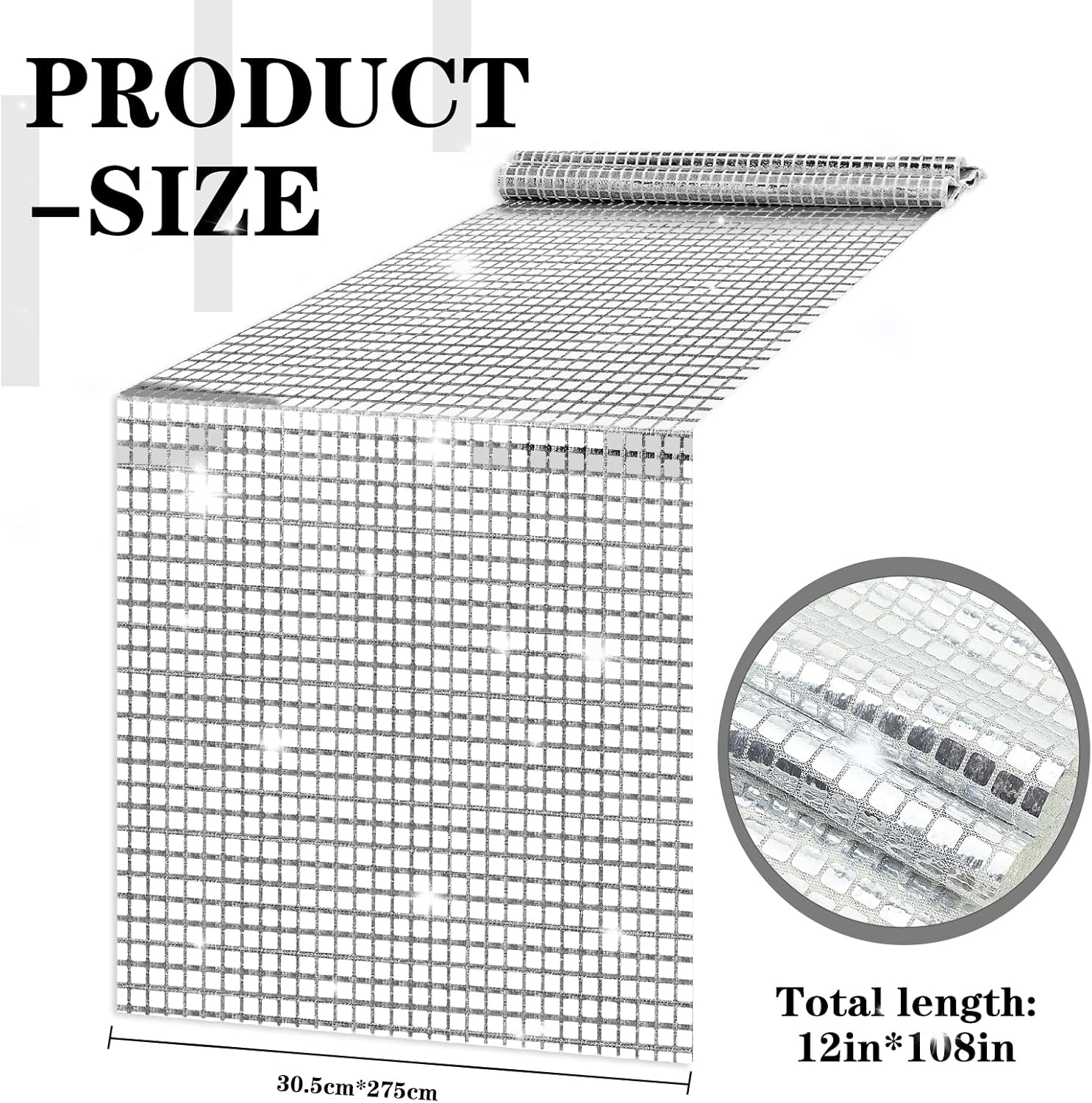12 x 108 Inches Glitter Disco Table Runner - Retro 70s 80s Theme Decor - Silver Sequin - Bachelorette & Wedding Party Supplies