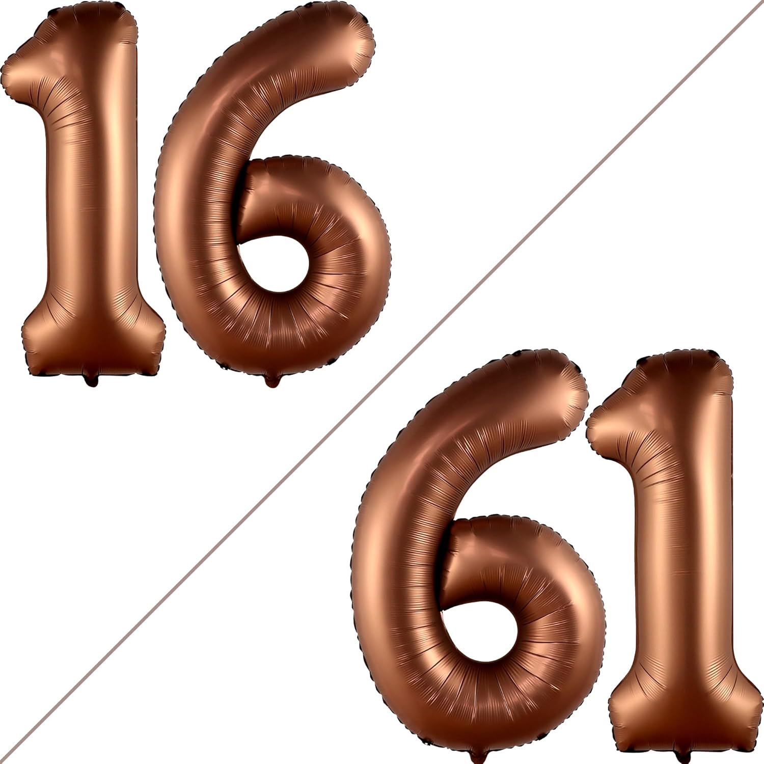 • LARGE SIZE - 40 INCH | ELEGANT DOUBLE DIGIT NUMBER BALLOONS - Dark Brown number 16 balloon is the party complement you shouldn’t miss. Add a great impact to your decoration with this big brown 16 balloon numbers, 40 inch, 32 Feet White Ribbon and 1 Straw. You can Pair this Brown sweet 16 balloon with other birthday balloons for brown sweet 16 decorations, 16th birthday decorations for girls and 16th anniversary. Embrace sweet 16 decor birthday decorations neutral colour.