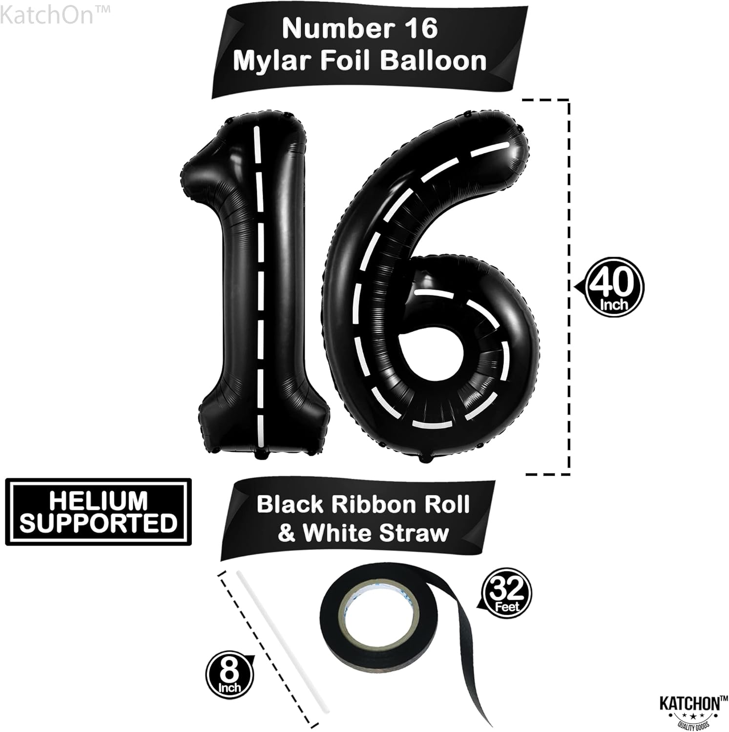 • LARGE SIZE - 40 INCH | BEAUTIFUL ROAD THEME NUMBER BALLOONS - This Black 16 Balloon number 40 inch is the party complement you shouldn’t miss. Add a great impact to your decoration with this gaint sweet 16 balloons Car Mylar Foil comes with, 1 Black Ribbon and 1 Straw to Inflate balloons. Pair this sweet 16 balloons number with other balloons to create Wonderful Decor yo your birthday, New Driver Party Decorations or anniversary decorations.