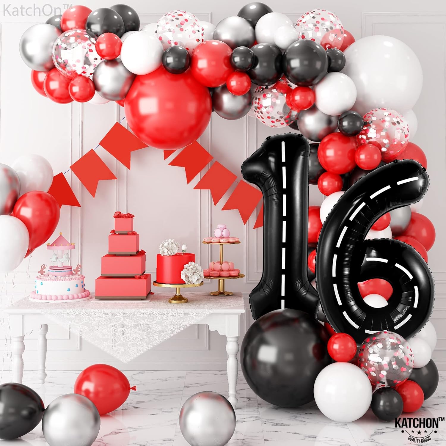• MAKE A CONFIDENT CHOICE | COMPELETE SATSFACTION - We are very confident with the quality of these 16 decorations birthday boy balloons. if you were not satisfied with 16 year balloons quality for any reason, our customer service team is happy to help you. We care about your experience and good feedback so we personally made sure that you’re going to love and enjoy decorating your event with race car 16th balloon road party decorations. Perfect road number balloons for 16 year old birthday decorations