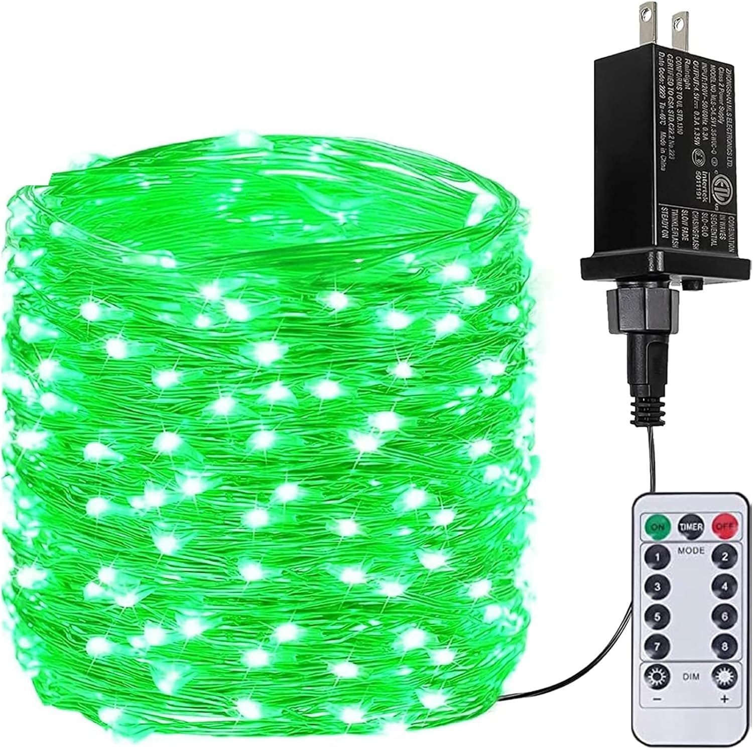 • Fairy Lights Plug in 66 FT 200 LED with Remote: Upgraded brightness 200LED 66feet string lights, green, IP44 waterproof, UL588 approved, 8 modes, copper wire, with remote & timer function, beautiful twinkle lights for indoor and outdoor use, perfect bedroom decoration, great ideal for party, wedding, birthday, St. Patrick's Day, Thanksgiving, Halloween, Christmas, etc.