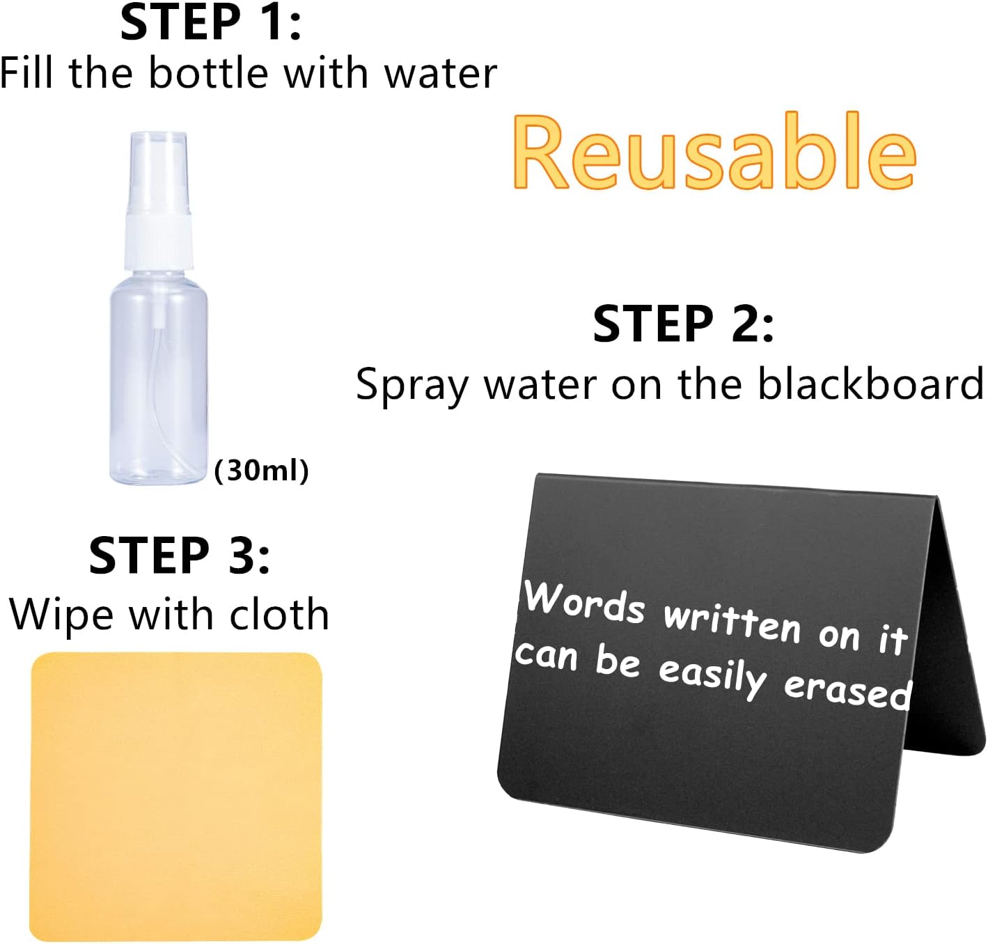 • Sturdy Materials: The small chalkboard sign is made of high quality dark matte black plastic material. Sturdy and waterproof, not easily deformed or broken