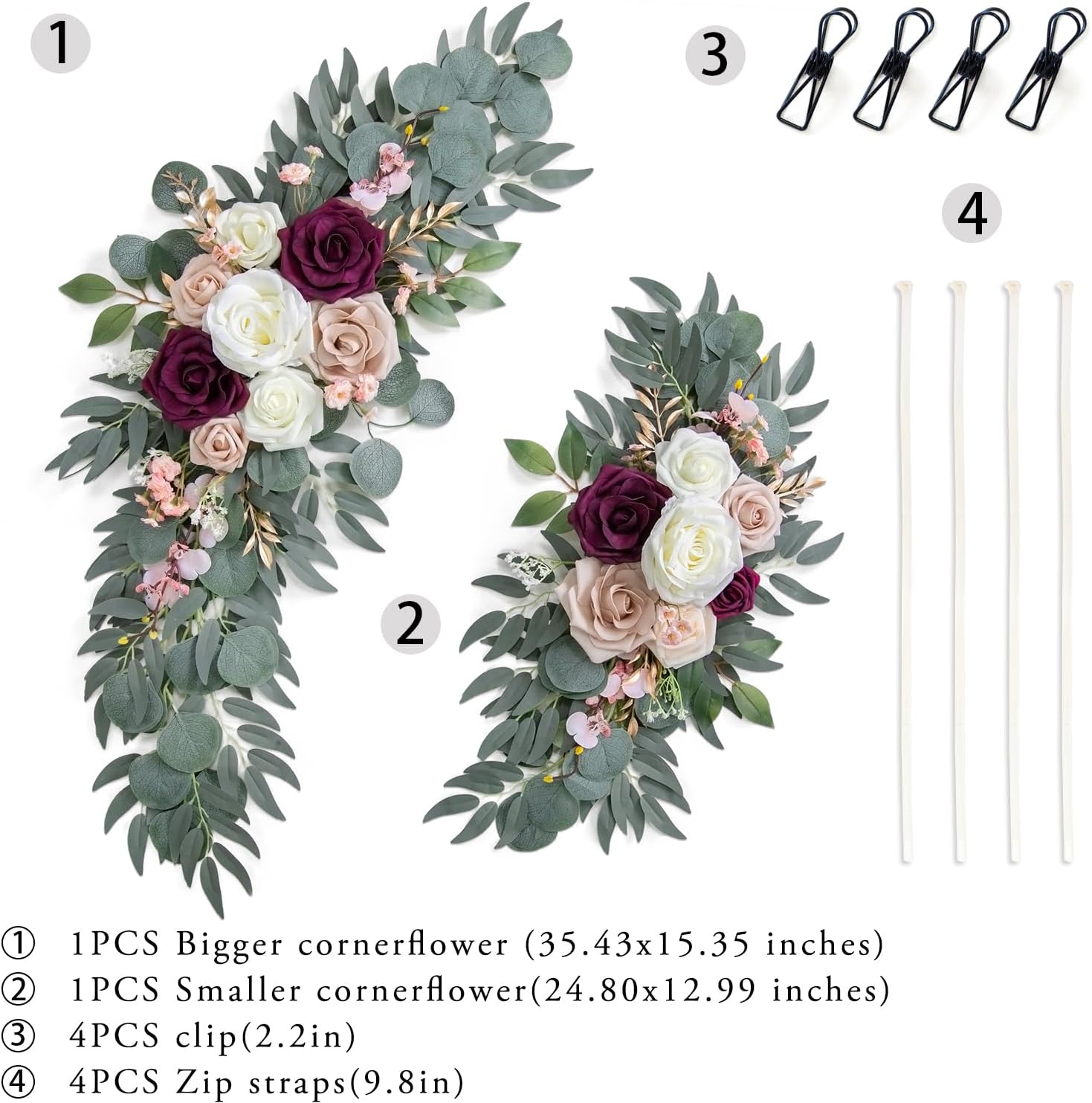 Ponatia Wedding Arch Flowers (Pack of 2), Artificial Burgundy & Nude & Ivory Wedding Flowers for Welcome Signs and Ceremony Reception