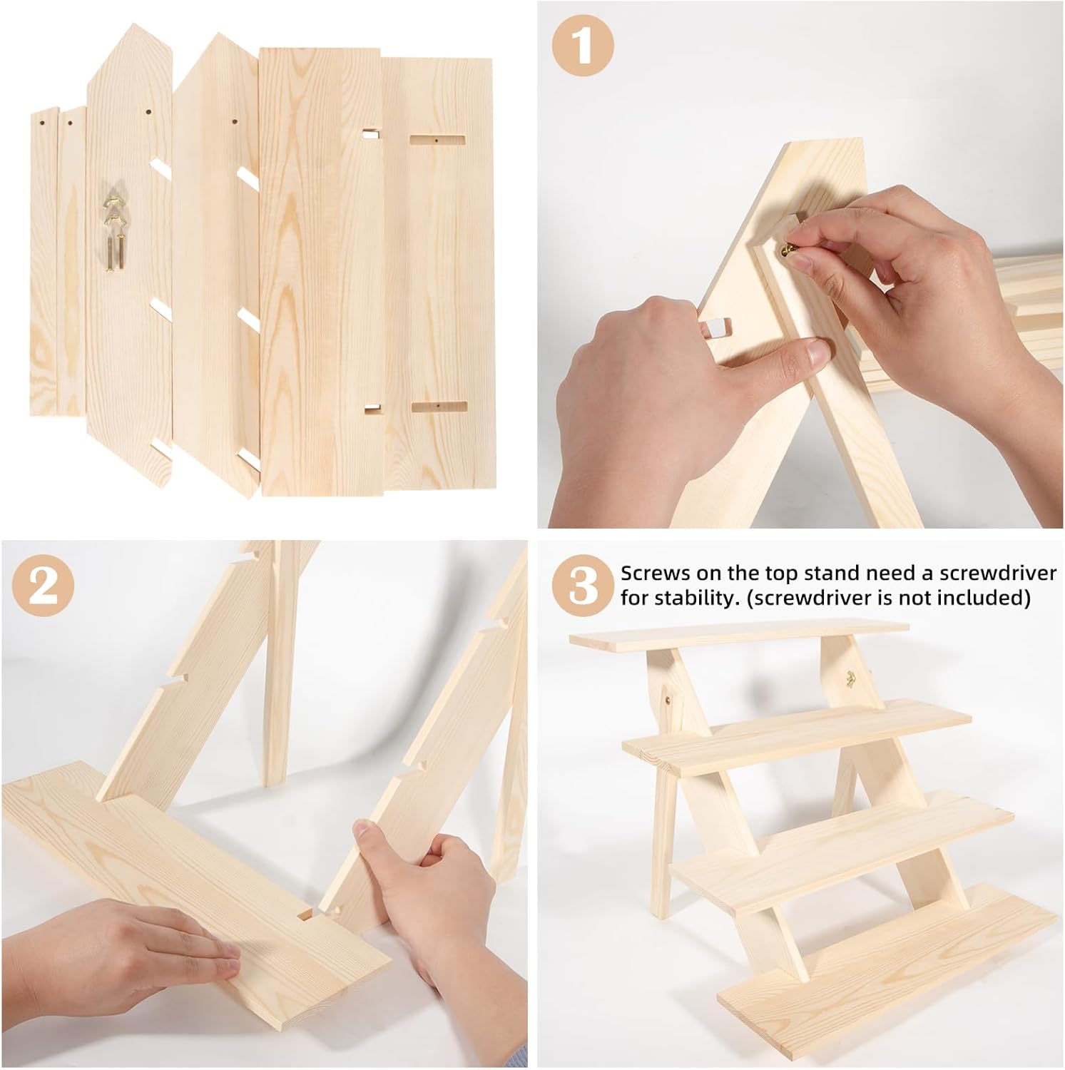 • Easy assembly & portability: Our tiered cupcake stand features a quick 1-minute setup—pre-drilled holes and included screws make assembly effortless (Screws on the top stand need a screwdriver for stability, screwdriver is not included) ). The foldable legs allow for easy transport to trade shows, outdoor events, or camping trips. Its compact, detachable design saves storage space when not in use