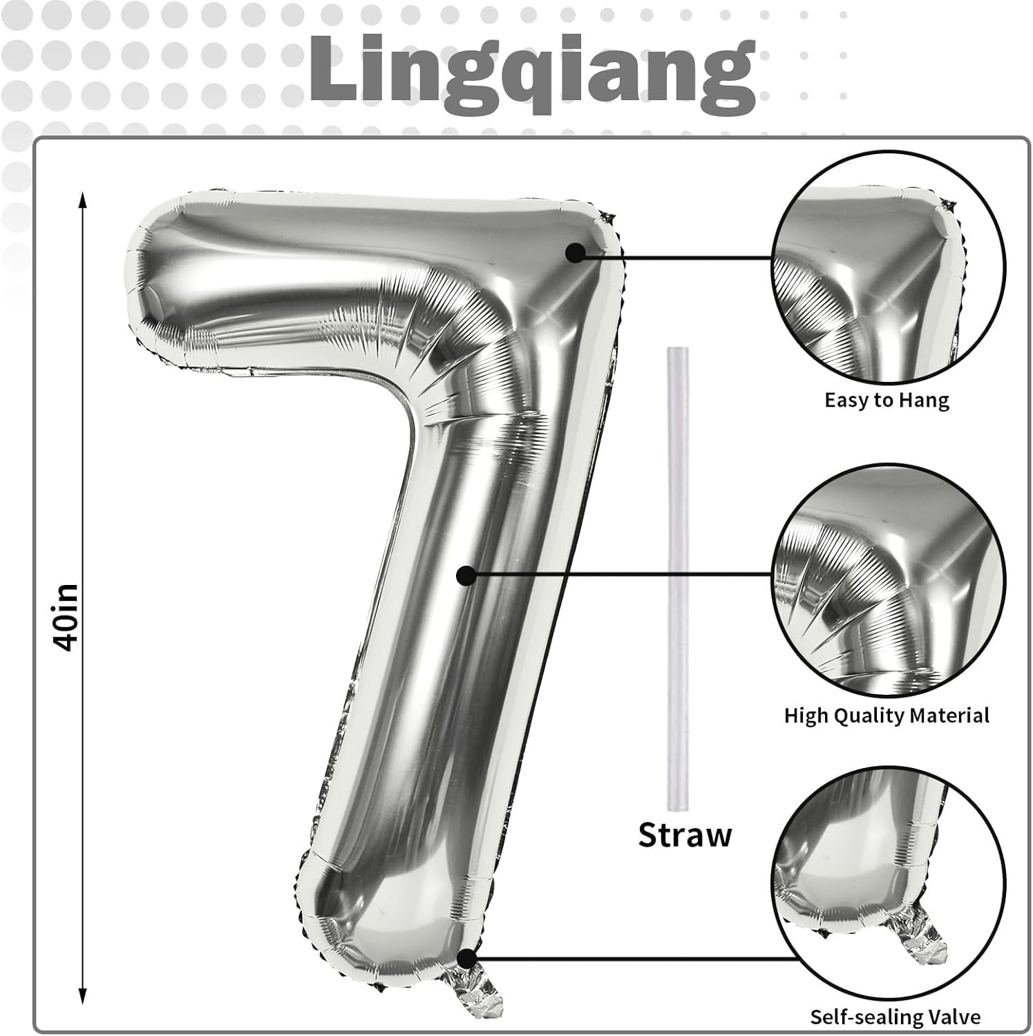 • πŸŽ‰ Silver Number 7 Balloon πŸŽ‰ - You will get 1pc 40 inch mylar foil number 7 balloon and 1pc straw. Perfect for 7th 17th 27th 70th 75th birthday or anniversary party decorations supplies.