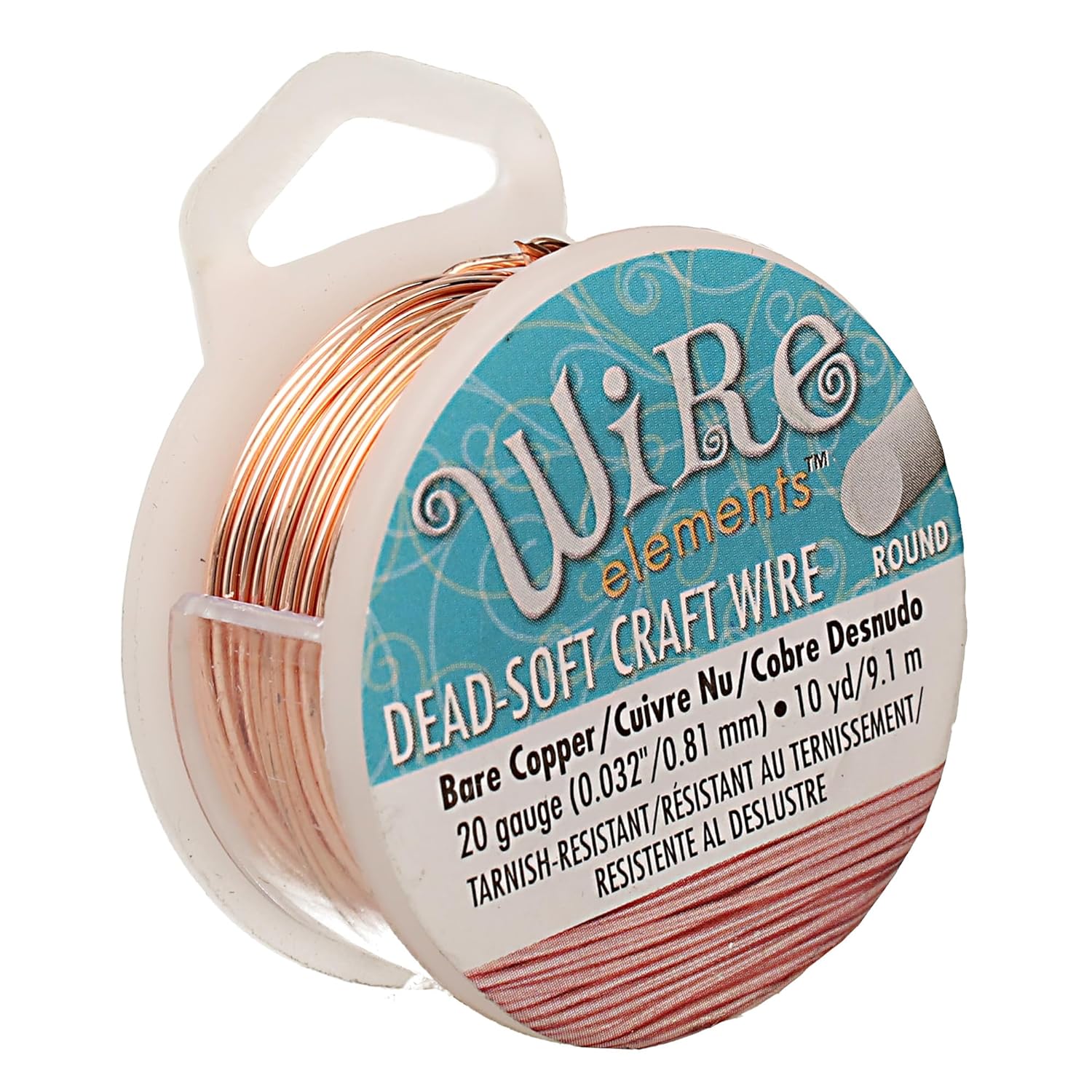 • COILS OF WIRE: This 20-gauge wire comes in a vibrant bare copper color, encased in a tarnish resistant coating, and measures 0.81mm (0.032 inches) in diameter. There is 10 yards of wire on this spool and comes with a clip to protect your wire when it is not in use.