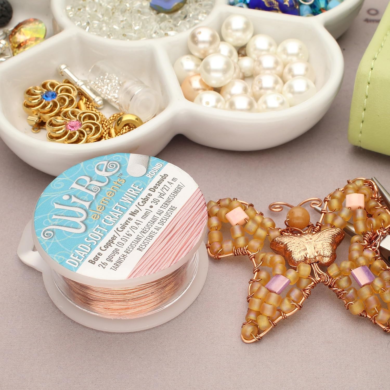 The Beadsmith Wire Elements Craft Wire – Tarnish Resistant, Soft Temper, Round, Bare Copper Color – 0.41mm, 26 Gauge, 30 Yard Spool – Jewelry Making, Wire Wrapping, Floral, & Other DIY Crafts