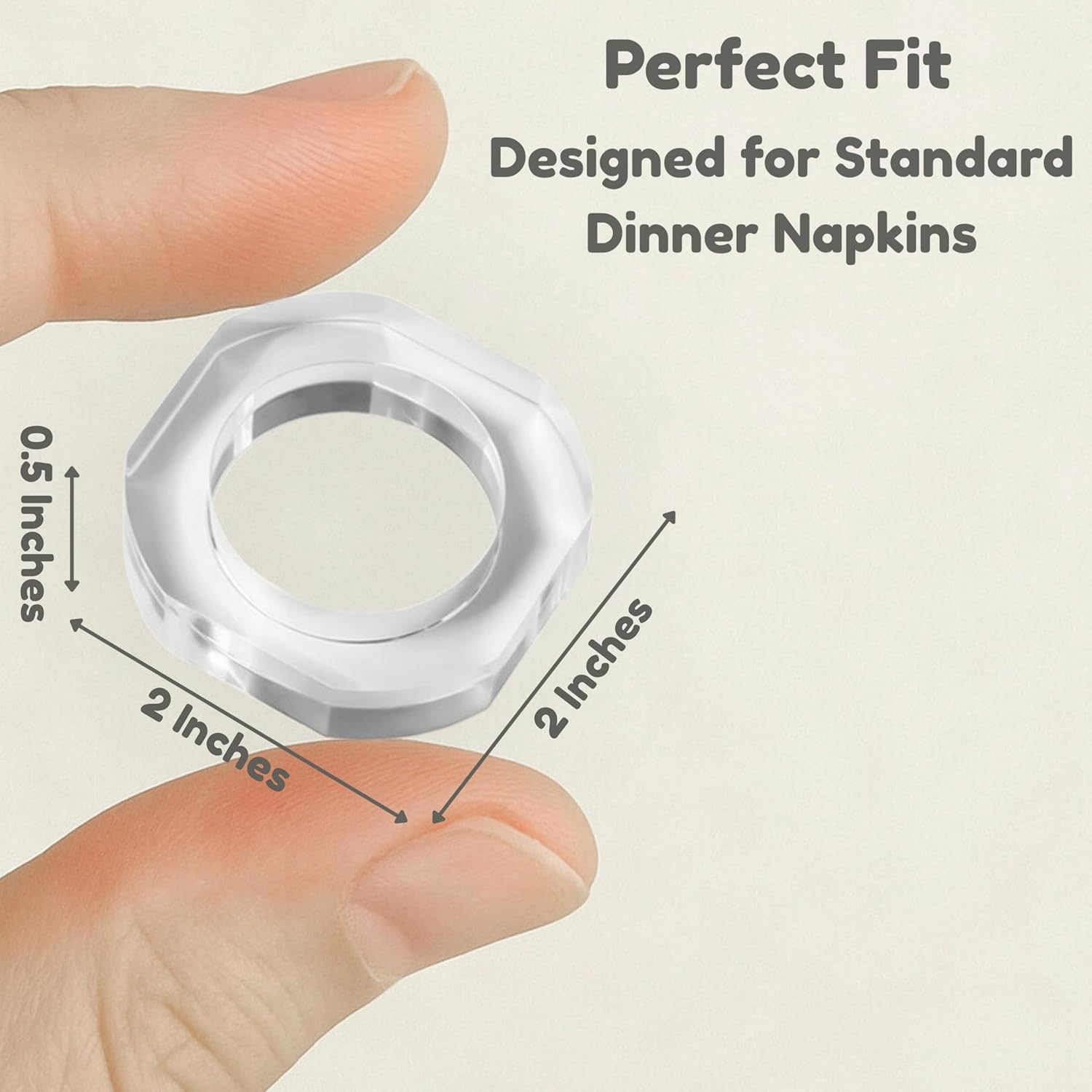 • ✅ COMPACT SIZE -FITS STANDARD CLOTH NAPKINS WITH STYLE: Each clear acrylic napkin rings measures 2 x 2 x 0.5 inches, providing a snug fit for most fabric napkins. The square shape offers a modern aesthetic, perfect for refined table setups or contemporary dining themes.