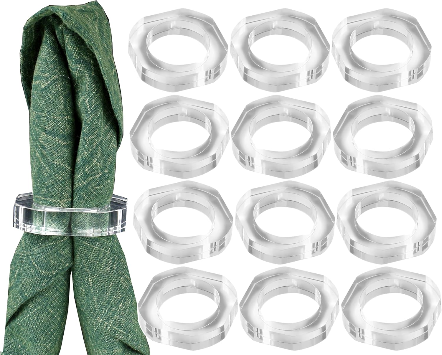Acrylic Napkin Rings Set of 12-Elegant Napkin Holders for Cloth Napkins, Classic Round Serviette Rings for Dining Table Décor, Weddings, Banquets, Parties & Gatherings (Transparent)-ALPHA Living HOME