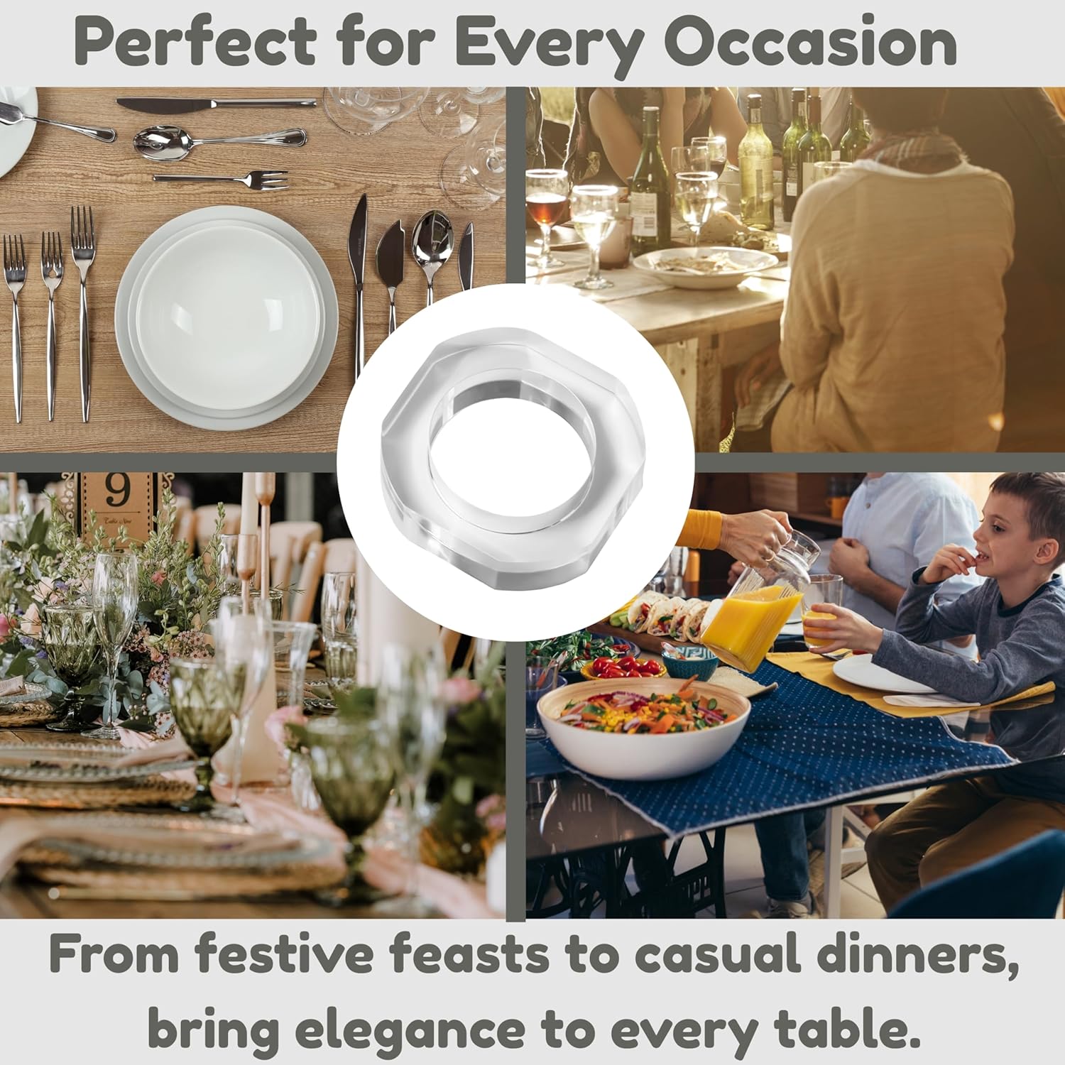 • ✅ STACKABLE & CLUTTER-FREE STORAGE -NO TANGLED SETS: Unlike metal or fabric napkin holders that get tangled or bent, these smooth acrylic rings stack neatly-ensuring organized storage between uses. Perfect for caterers, stylists, and space-conscious homeowners.