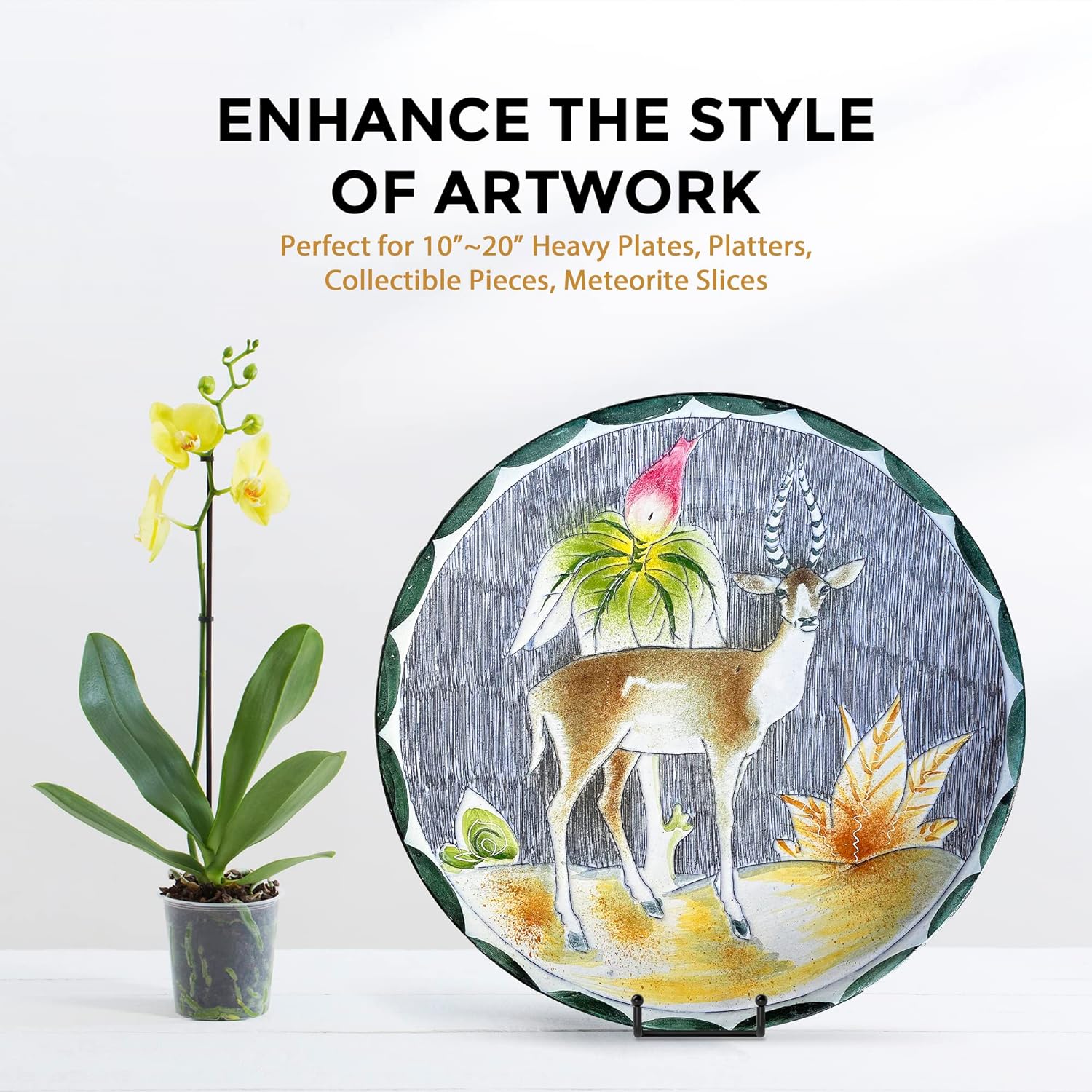 • CHOOSE YOUR LARGE STAND: - This 10 inch plate stand features a sturdy 2.5" deep lip, a 10° tilt angle, and a 4" widened design with a 5.3mm wire diameter, making it perfect for securely holding items ranging from 10" to 30" in size and up to 20 lbs in weight, such as heavy and thick plates, frames, and artwork.