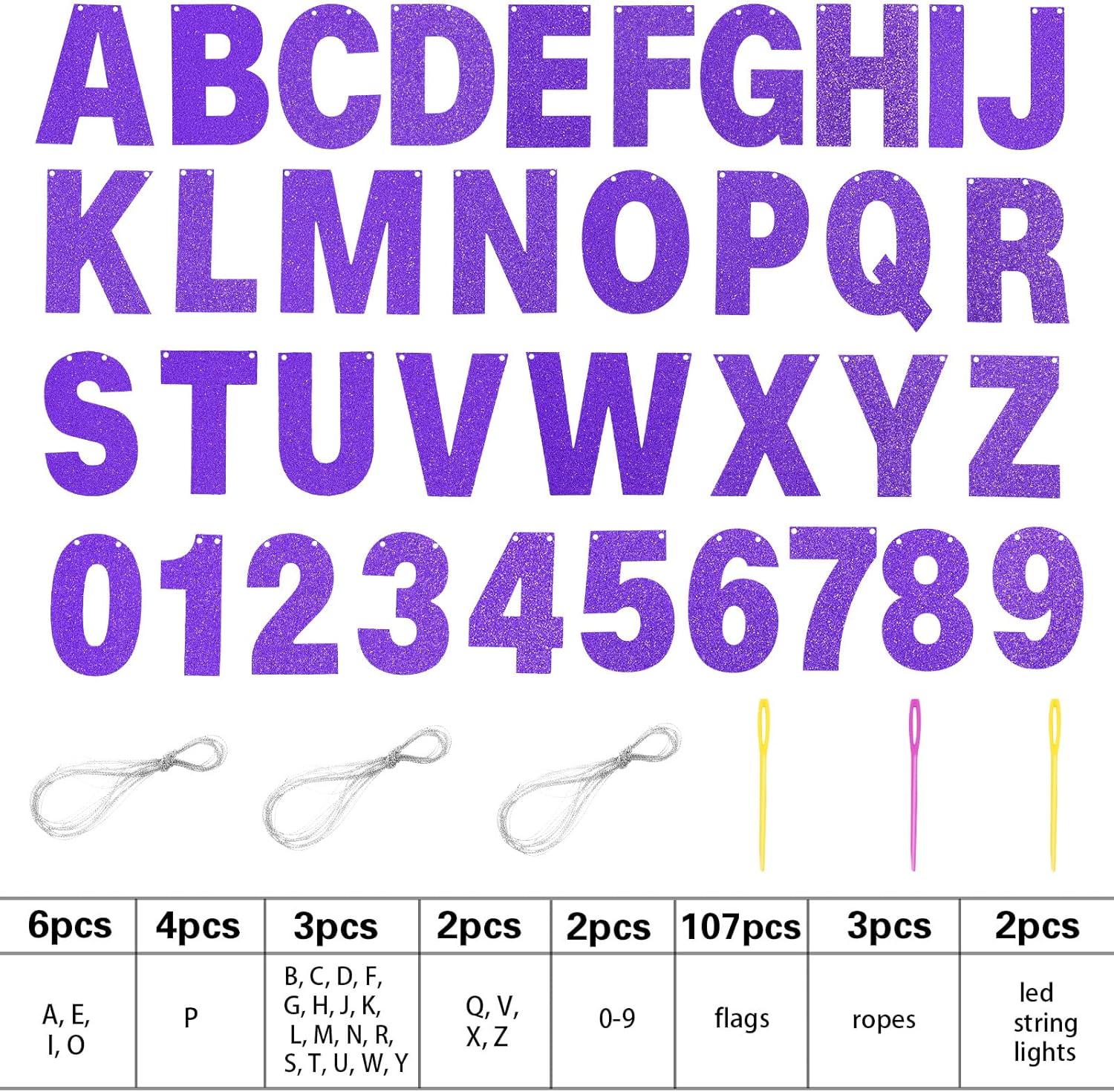• DIY Banner Kit with Letters: you will get 107 pieces of letters and numbers, including 6 'A, E, I, O' letters, 4 'P' letters, 3 'B, C, D, G, H, J, K, L, letter M, N, R, S, T, U, letter W, Y, F shape' letters, 2 'Q, V, X, Z' letters and 2 '0-9' numbers, come with 3 ropes; Nice combination meet your various parties decorative demands