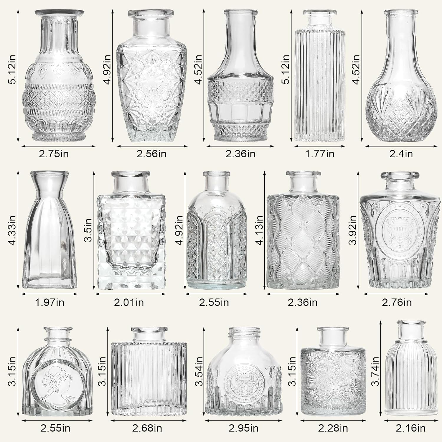 • Vintage Design: You get 16 glass bud vase, each small glass vase is decorated with etched patterns to further enhance its attractiveness. They are very classy and can be used in any environment, from elegant to simple and casual. They will become a beautiful decorative center on your window sill, dining table or wedding reception table