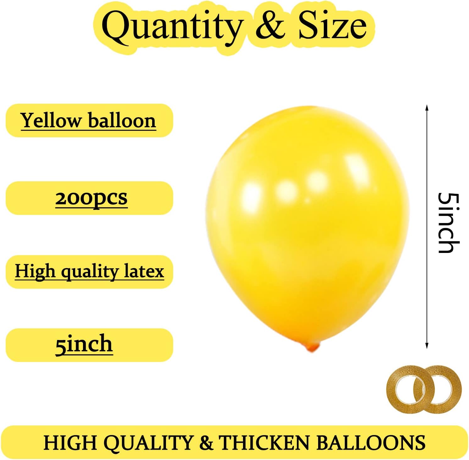 KAWKALSH 200pcs Yellow Balloons 5 Inch, Small Mini Latex Balloons for Party Birthday Baby Shower Anniversary Festival Arch Garland Decoration