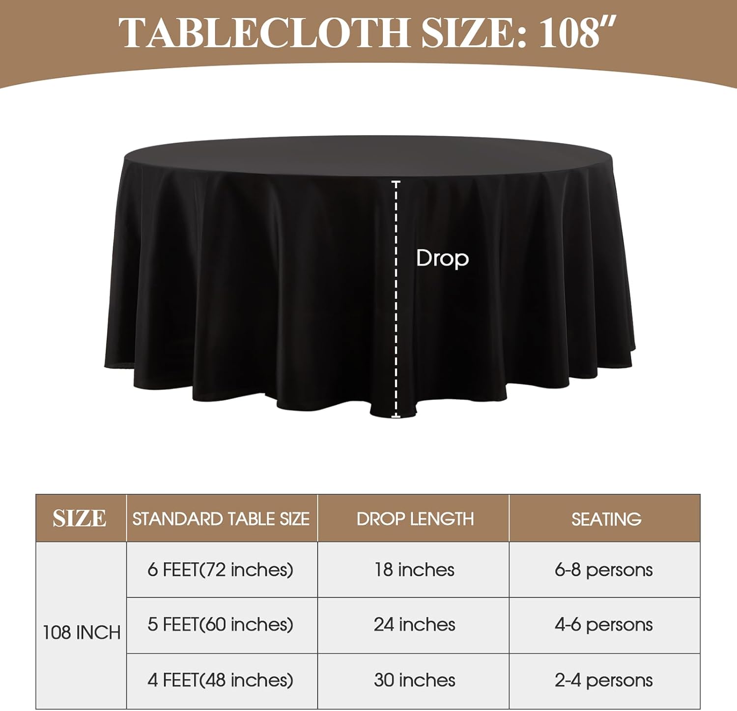 • Suitable Size: This polyester round tablecloth has multiple sizes to choose from, 90, 108, 120, 132 inches, which can meet the needs of tables of different sizes. In order to buy a tablecloth that is more suitable for your table, please measure the actual size of your table before purchasing and refer to our size chart