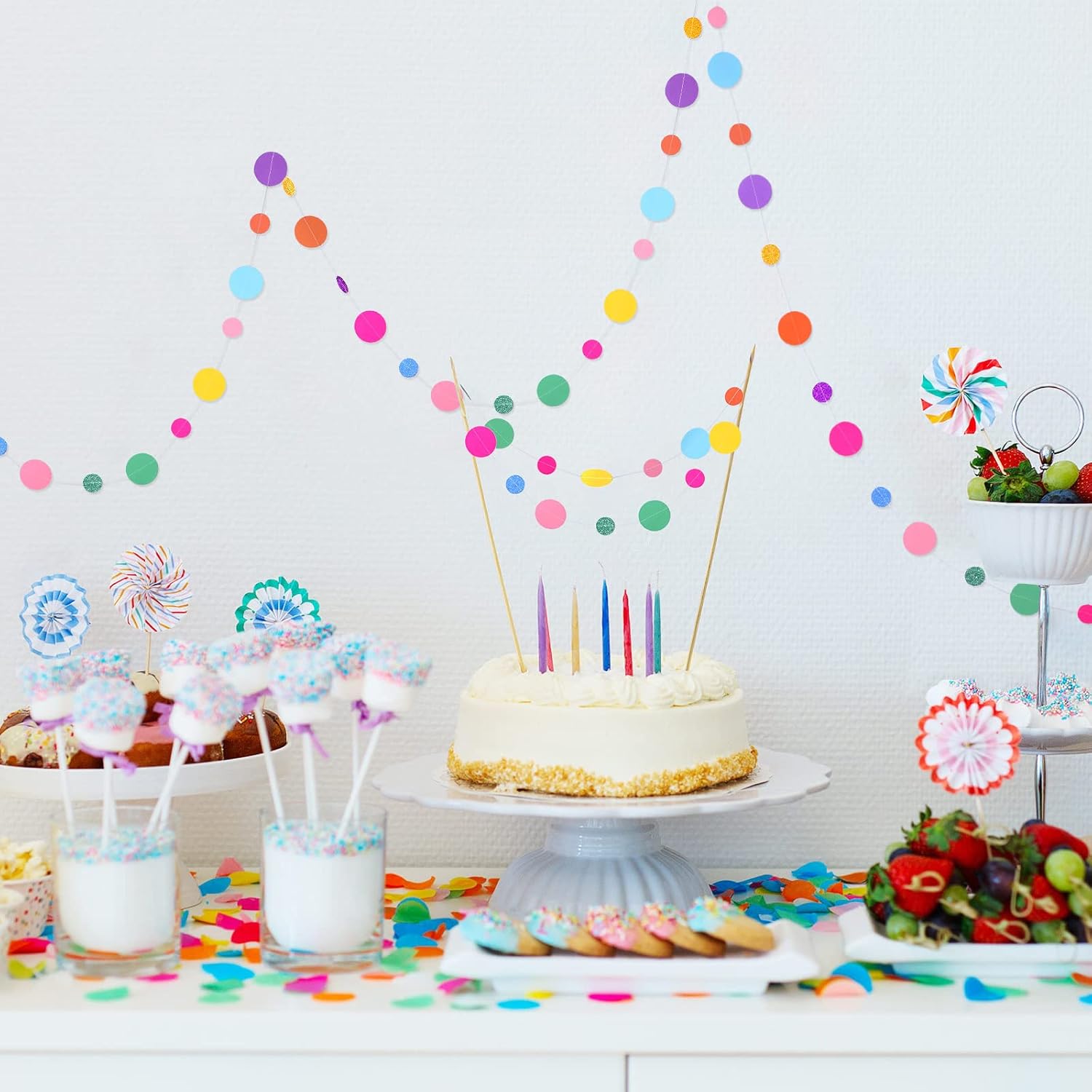 Outus 20 Pieces Colorful Dots Paper Garland Round Glitter Garland Hanging Confetti Streamers Backdrop for Candy Birthday Classroom Halloween Trunk or Treat Car Decoration (Rainbow)