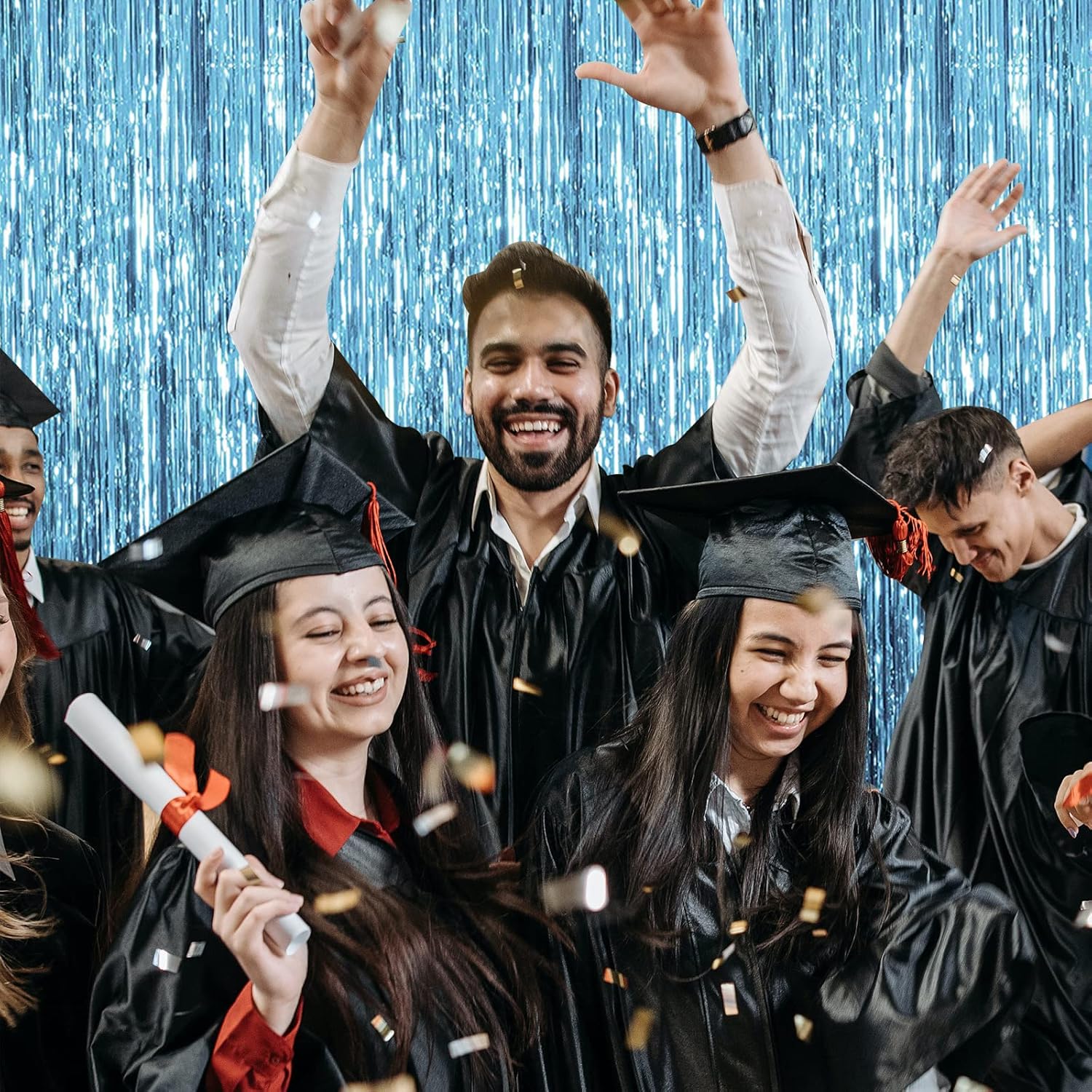 • Material: The metallic tinsel backdrop is made of tinsel with shiny surface, durable material can be reused. Good for adding sparkle as decorations for parties.