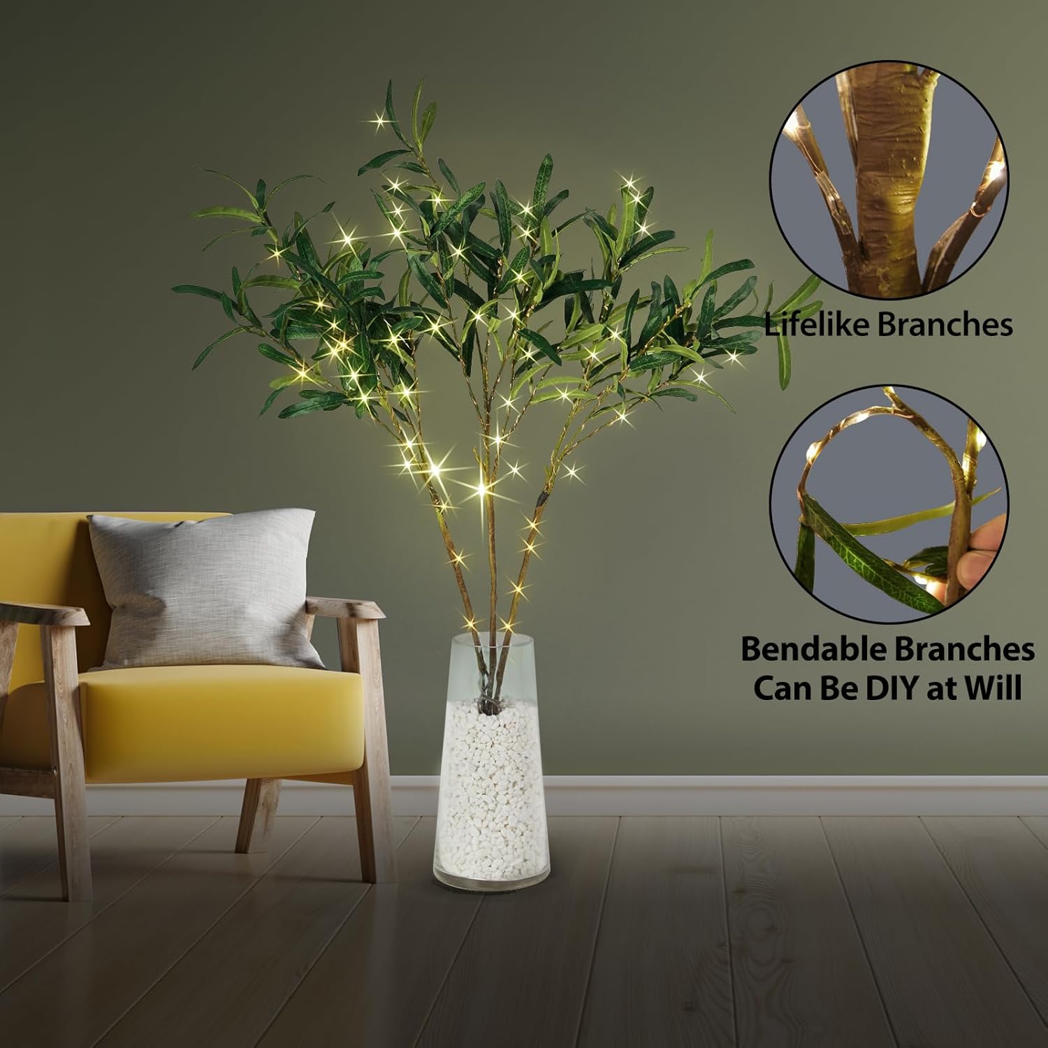 • 🎄【You can DIY】The olive-lighted tree branches are 33in high and contain 99 warm white LED lights. The texture of these olive trees' artificial indoor branches is soft and sturdy, it is easy to bend into any shape. You are free to DIY into what you want, you can also put some Christmas, Easter, and other festive decorations on the lighted branches to decorate it
