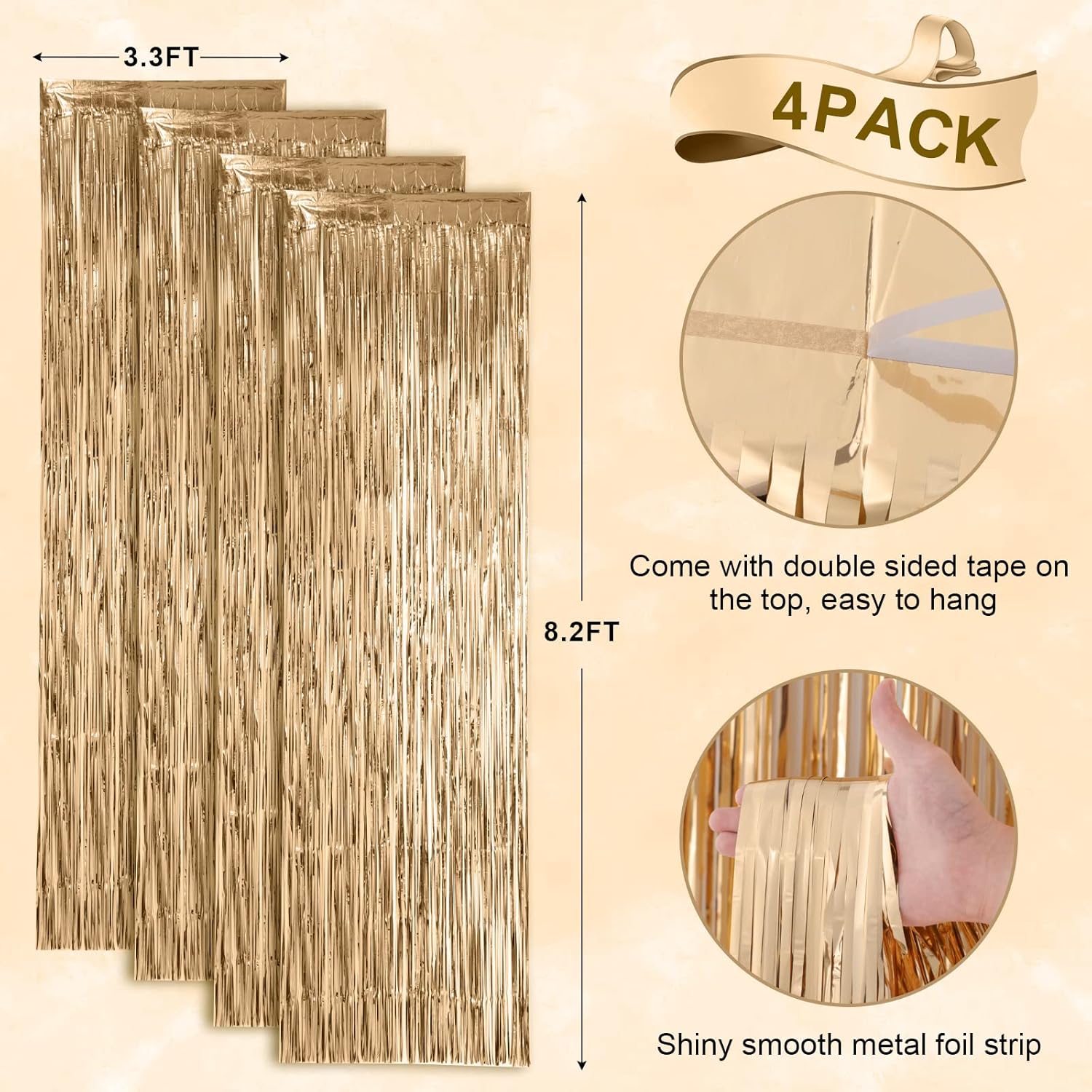• Premium Material: This champagne foil curtain backdrop is made of stable tinsel, non-fading, stay shiny and reusable. Unfold it and then enjoy your glittering party