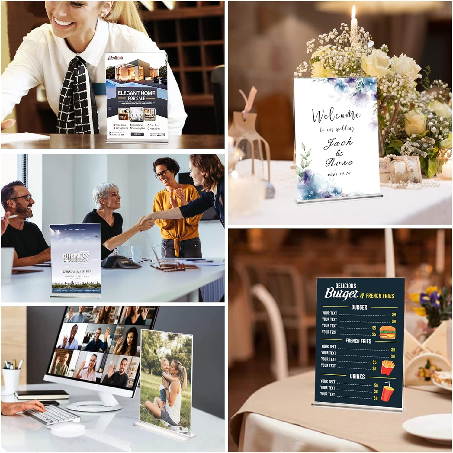 • Crystal-Clear Acrylic Sign Holder:Made of premium acrylic, these sign holders offer high transparency, durability, and a professional display for any 8.5x11 paper or flyer.