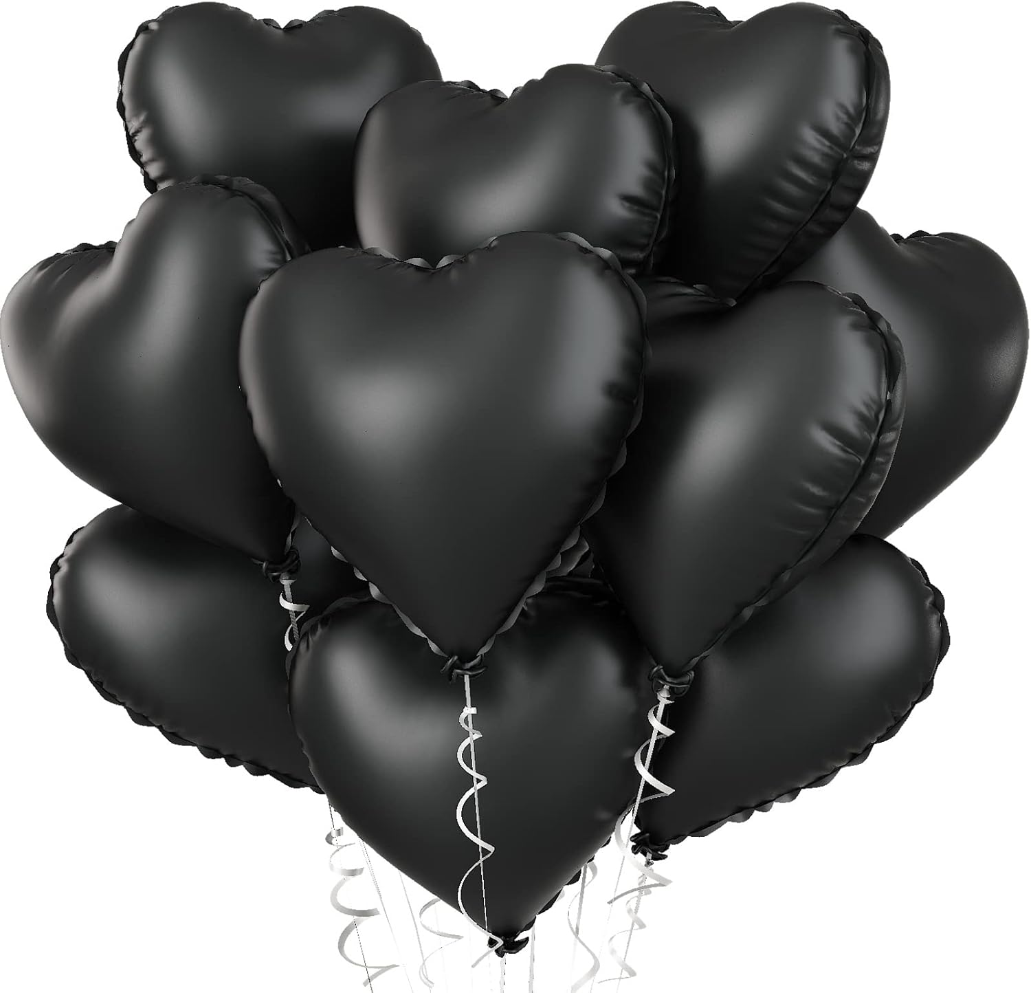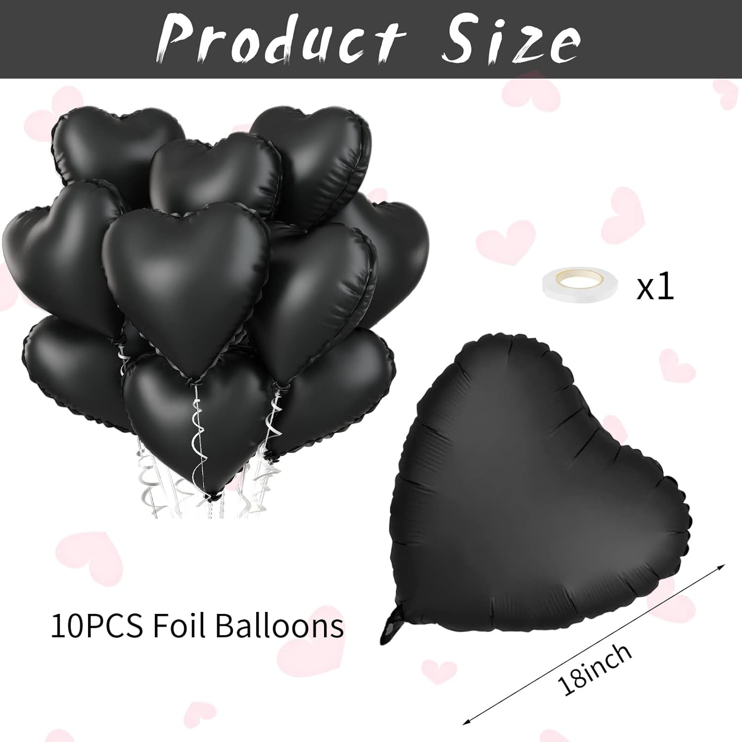 • 💖 10 PCS BLACK FOIL HEART BALLOONS: Package contains 10 x 18 inch black heart balloons, 1 x 10m ribbon.The black heart shape balloons are specially shaped, the perfect size for your holiday or party decorating needs, together create a fun and surprising party, leave an unforgettable smile!