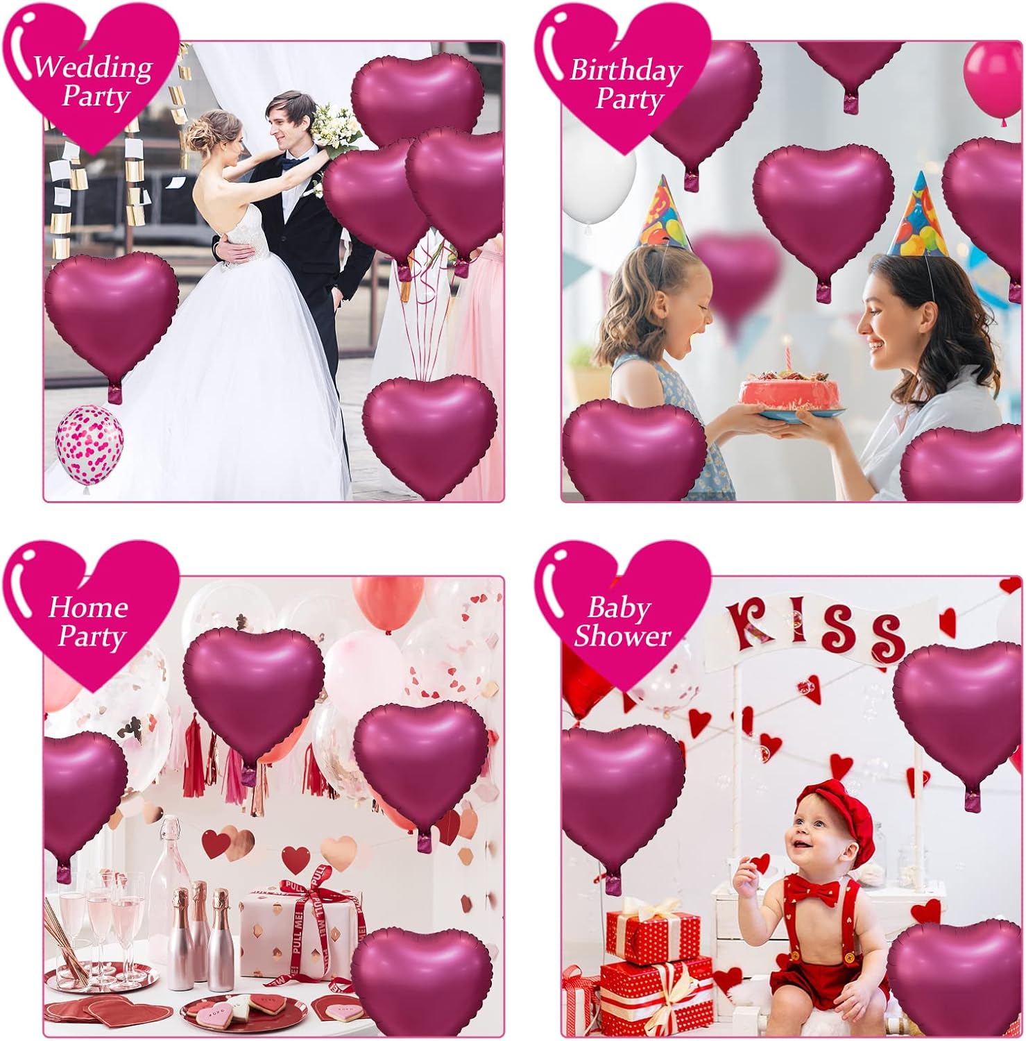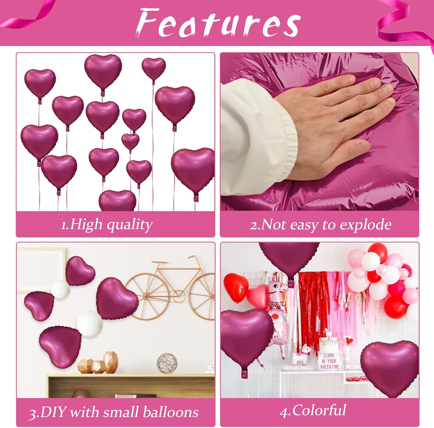 • 💖 HIGH QUALITY FOIL BALLOONS: The surface of the heart balloons is a metal matte surface. All materials of heart balloons are of high quality and good safety foil, which is very durable, harmless, not easy to break and last a long time, glossy, beautiful in shape. Our foil heart shape balloon set can create an exclusive sweet atmosphere for party.