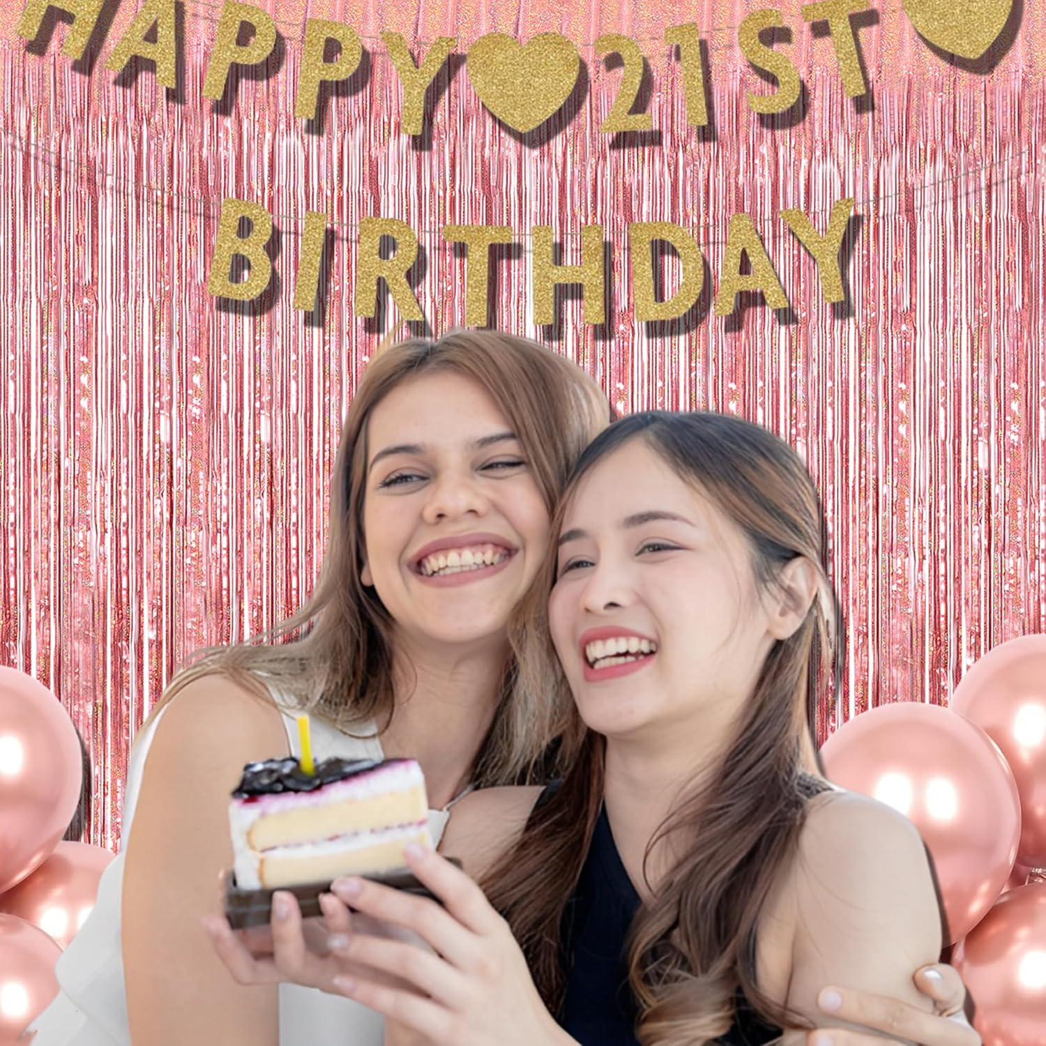 BRAVESHINE Rose-Gold Metallic Tinsel Backdrop - 2Pcs 3.2x8.2ft Metallic Tinsel Foil Fringe Curtains Photo Booth Streamers for 21-st Birthdays Bachelorette Engagement Bridal Shower Party Decorations